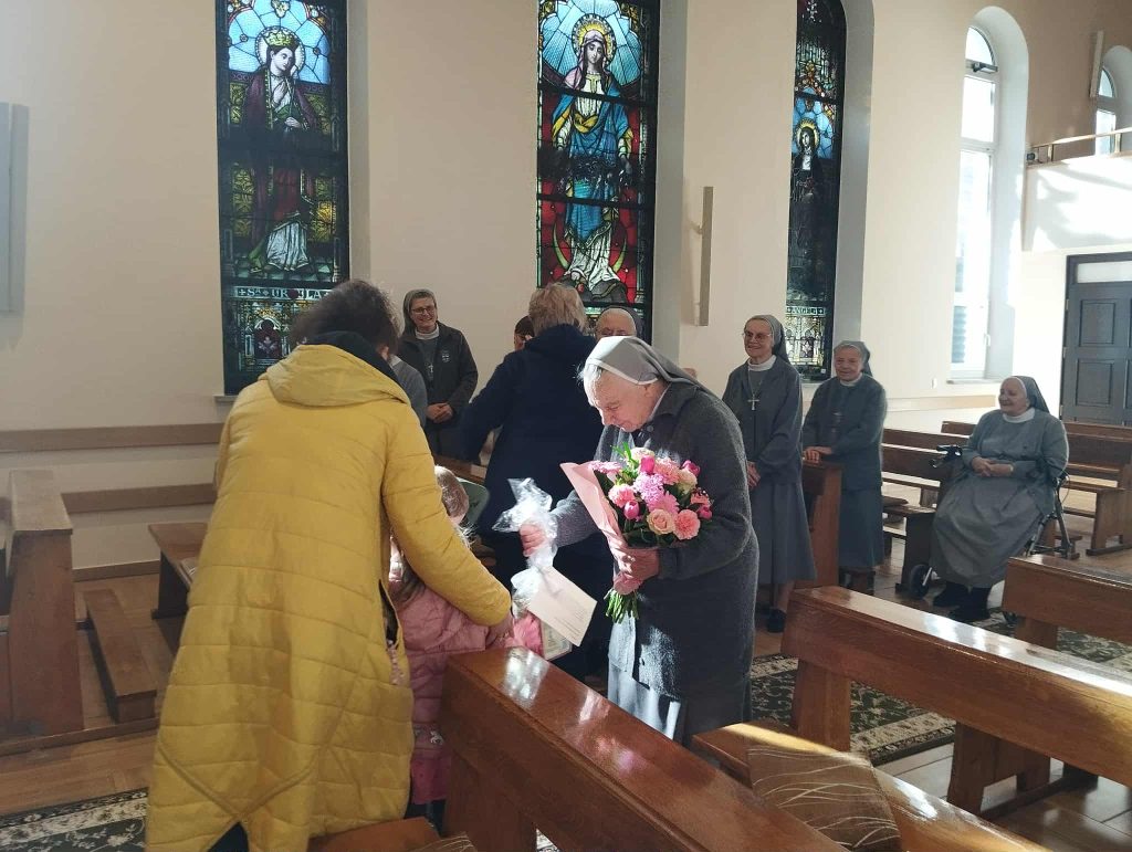 We wtorek, 21 października, dzieci z grupy Zuchy odwiedziły Siostry Urszulanki z okazji Ich imienin. Przedszkolaki zaśpiewały piosenki, których nauczyły się na zajęciach z religii, wręczyły siostrom własnoręcznie przygotowane upominki oraz z radością zaśpiewały głośne „Sto lat!”. Spotkanie przebiegło w miłej i serdecznej atmosferze.