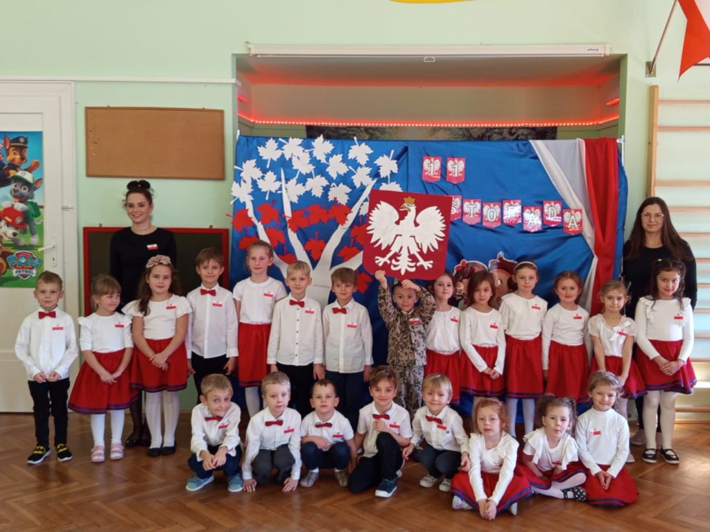 6 listopada najstarsza grupa wystąpiła przed publicznością przedszkolną w poważnym przedstawieniu z okazji 11 listopada. Zuchy zaprezentowały patriotyczne wiersze, piosenki oraz tańce. Trud pracy włożonej w przygotowania opłacił się, ponieważ na zakończenie widownia biła gromkie brawa. Mamy nadzieję, że w naszych przedszkolakach został zaszczepiony duch patriotyzmu i historii naszego kraju.