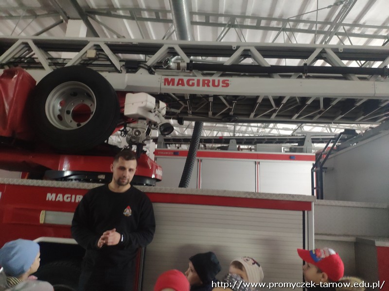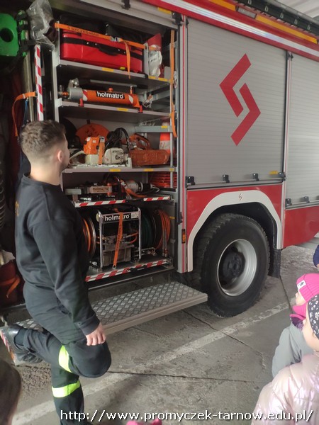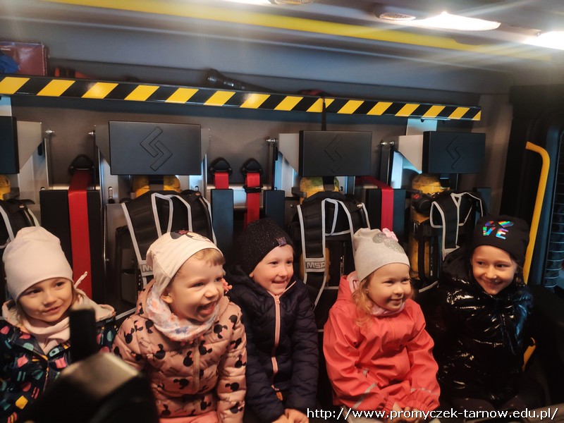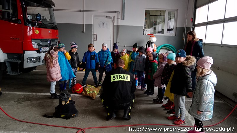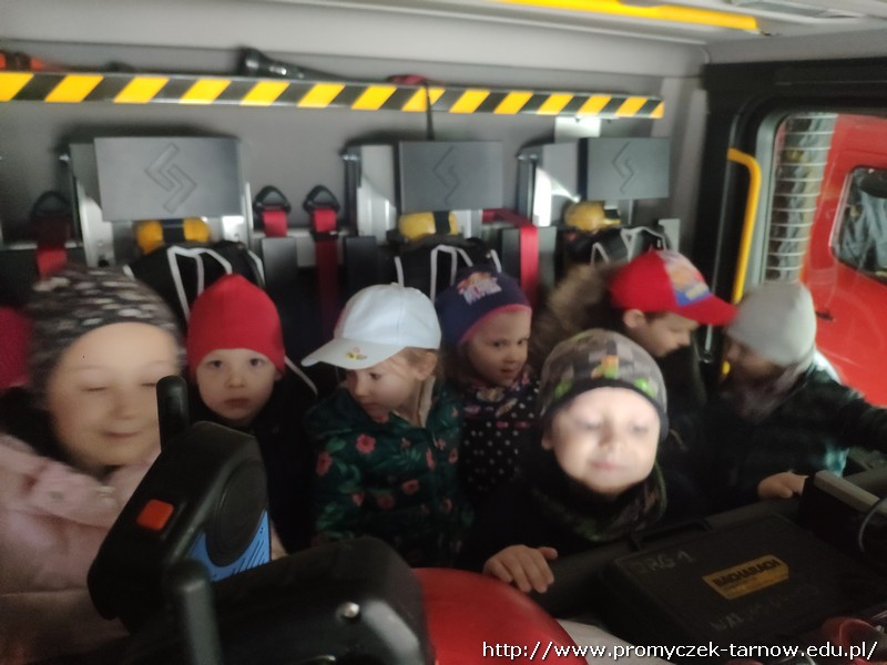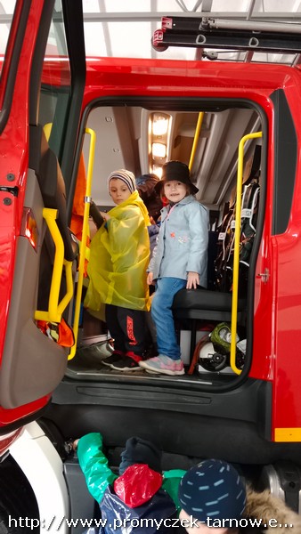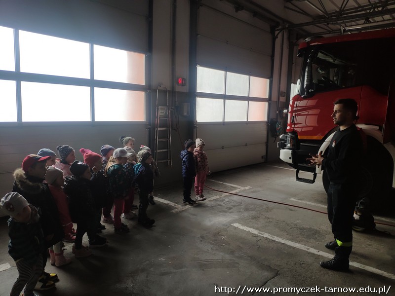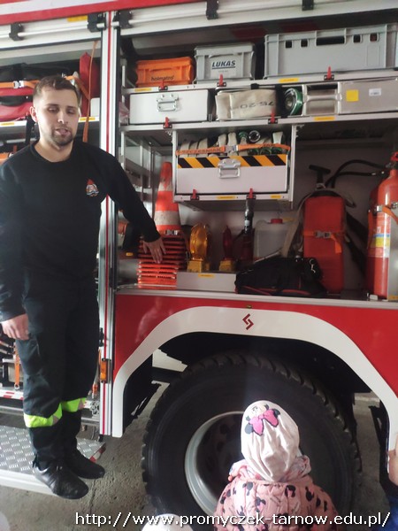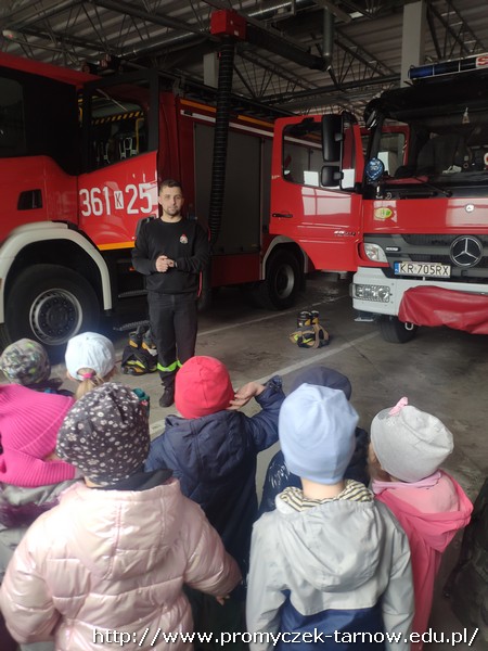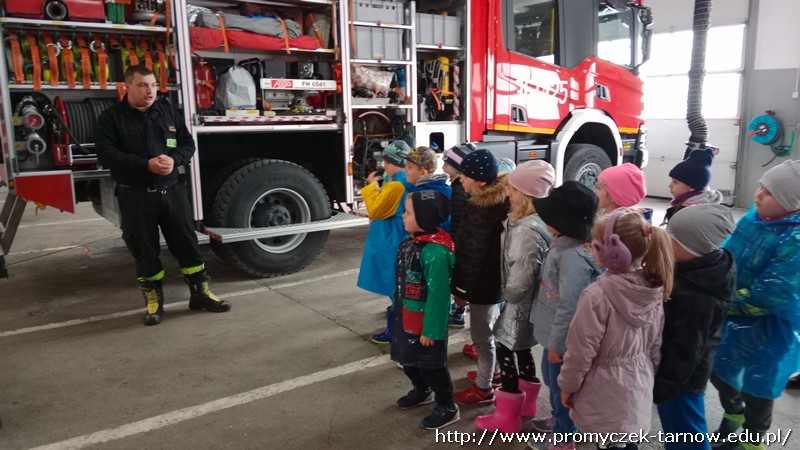 26 kwietnia promyczki udały się na małą wycieczkę do Państwowej Straży Pożarnej. Pierwszą atrakcją był przejazd autobusem miejskim, następnie dzieci udały się do budynku Straży Pożarnej, gdzie zobaczyły wozy strażackie. Pan strażak przypomniał dzieciom, że można do niego zadzwonić w razie pożaru, powodzi, wypadku, lub utknięcia wysoko na drzewie. Asy i Zuchy również wykazały się wiedzą na temat telefonu alarmowego do Straży. Później nastąpił najlepszy punkt programu czyli zwiedzanie wozu strażackiego od środka – promyczki zobaczyły jak wyglądają kaski, krótkofalówki oraz latarki strażackie. Pan strażak opowiedział również o sprzęcie jaki używają podczas akcji – wężach, gaśnicach, aparatach tlenowych, kocach, pachołkach itp. Dzieci miały okazję przymierzyć mundur strażaka, buty oraz kask, na sam koniec strażak zjechał po rurze udając się na akcję ratowniczą - dzięki temu promyczki miały okazję usłyszeć również strażackie syreny. Ta wycieczka na długo zapadnie w pamięć naszym przedszkolakom.
