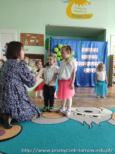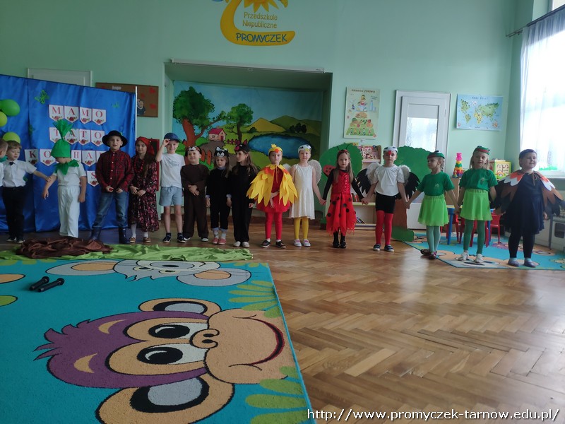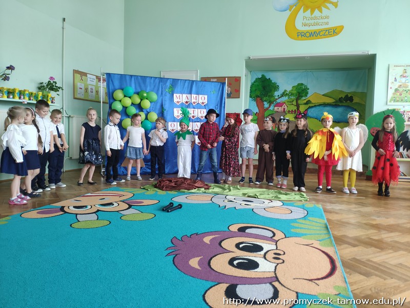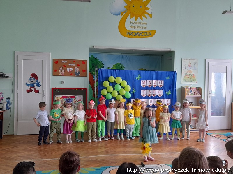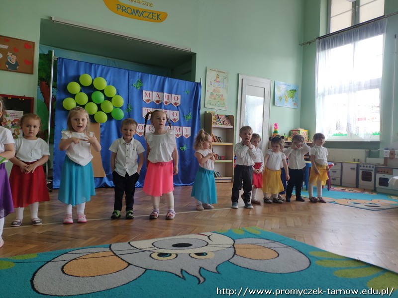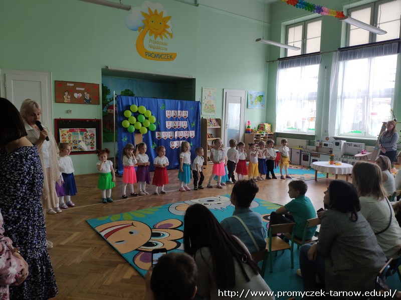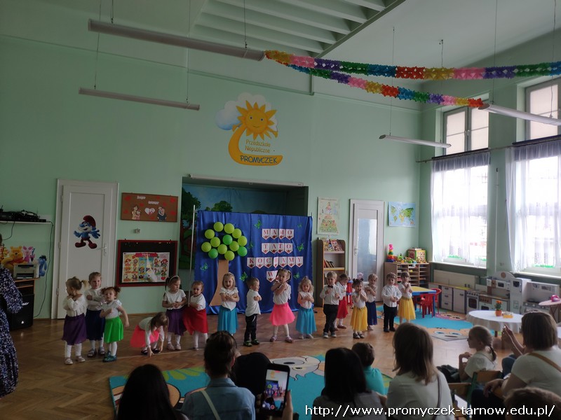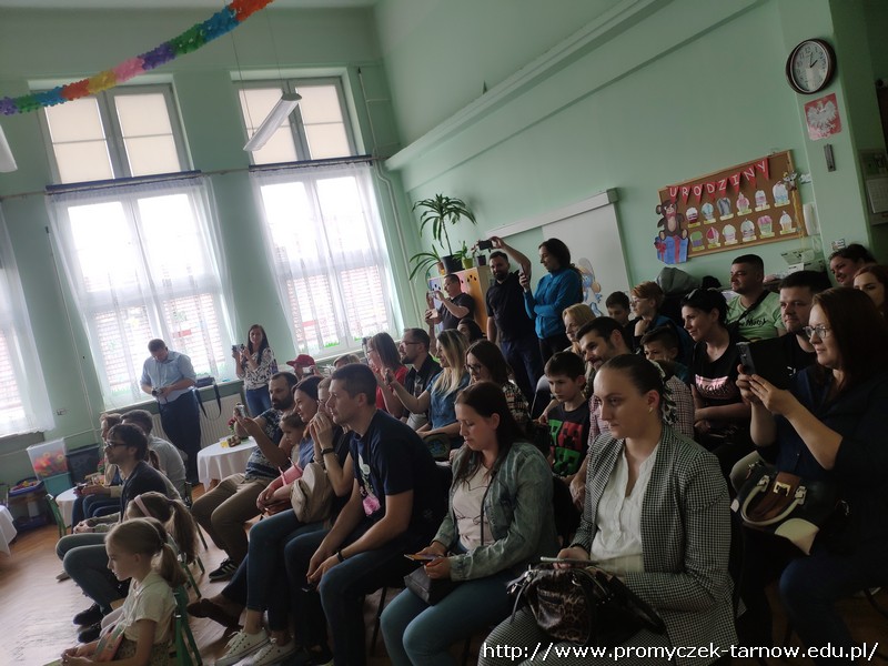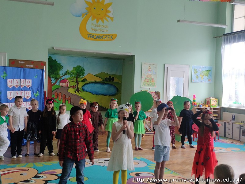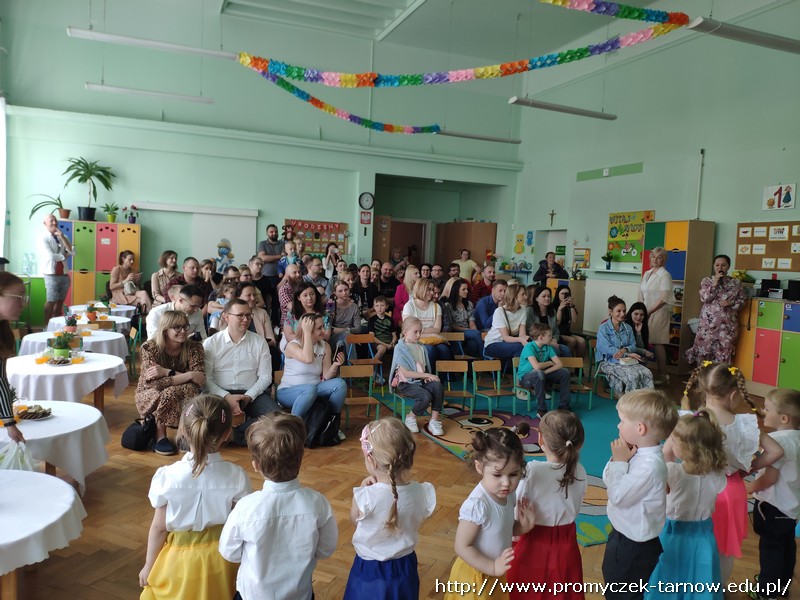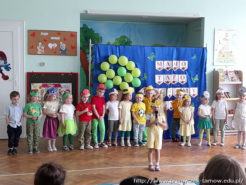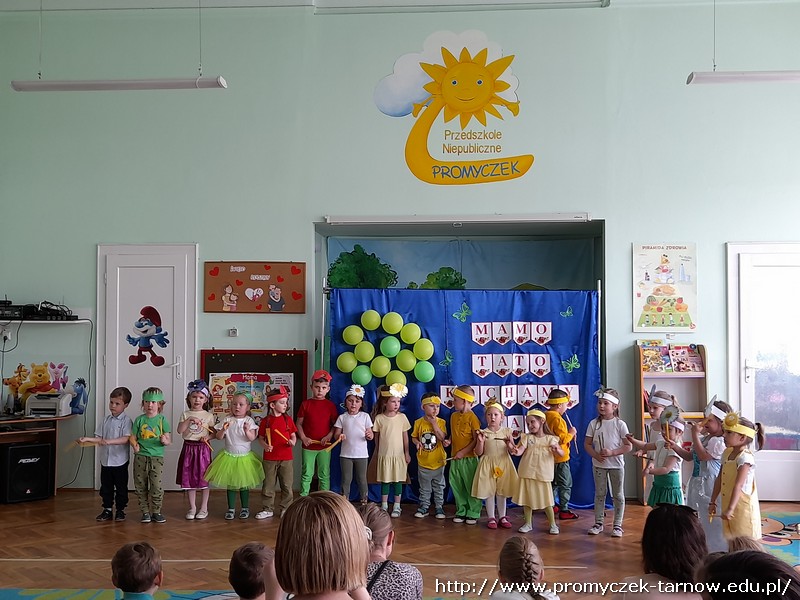 Ahhh cóż to było za wydarzenie, Dzień Mamy i Taty w naszym przedszkolu. 26 i 27 maja w Promyczku licznie zgromadzili się zaproszeni goście. Mama i tata - wyjątkowe osoby dla naszych podopiecznych. Poprzez piosenki, tańce, wierszyki oraz przedstawienia dzieci wyraziły wdzięczność i miłość swoim Kochanym Rodzicom. Zuchy zaprezentowały się w nowoczesnej wersji "Rzepki", Asy zabrały publiczność "Na wiosenną łąkę", a Smyki wzbiły się wysoko "Tatolotem". Mali artyści zostali nagrodzeni gromkimi brawami, słowami podziękowań od swoich rodziców, a na koniec wszyscy razem zasiedli do poczęstunku.