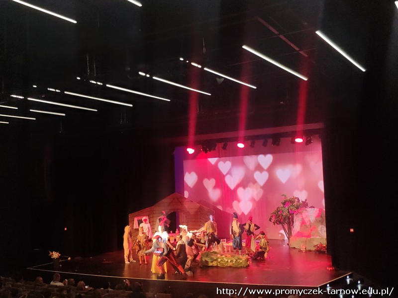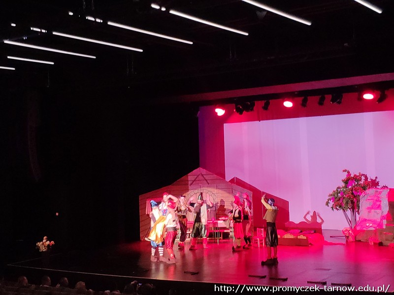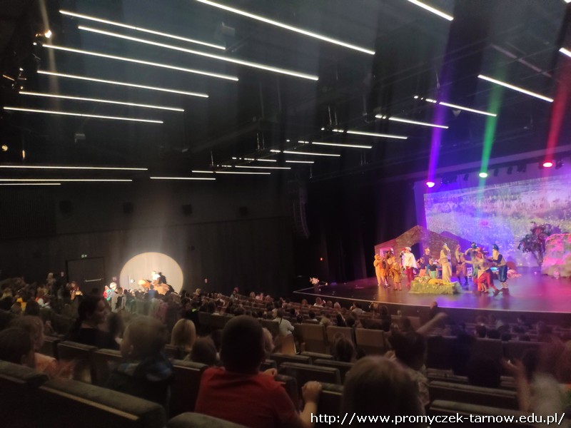 We wtorek 31 maja grupy Asy i Zuchy wybrały się do Centrum Sztuki Mościce na przedstawienie teatralne popularnej bajki "Królewna Śnieżka i siedmiu krasnoludków". Przedszkolaki mogły obejrzeć wspaniały spektakl taneczny w wykonaniu uczniów z Zespołu Szkół Niesłyszących i Słabosłyszących. Piękna scenografia i skoczne melodie sprawiły, że dzieci przeniosły się do świata bajki i z wielkim zainteresowaniem śledziły losy głównych bohaterów. Opowieść zwróciła uwagę na takie wartości jak przyjaźń i dobro, równocześnie uwrażliwiając dzieci na zachowanie ostrożności i bezpieczeństwa w kontaktach z osobami nieznajomymi. Za wzorowe zachowanie w teatrze dzieci udały się na plac zabaw, aby rozładować dziecięcą energię :)