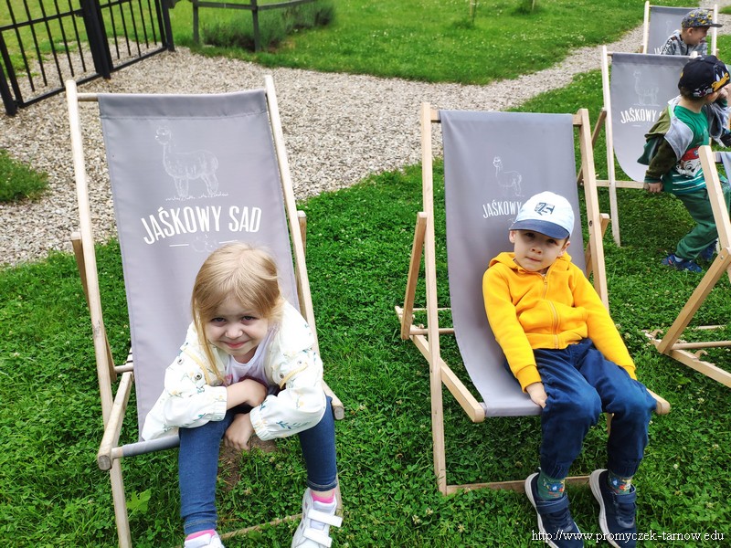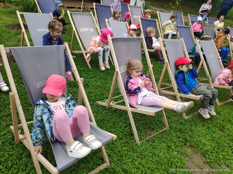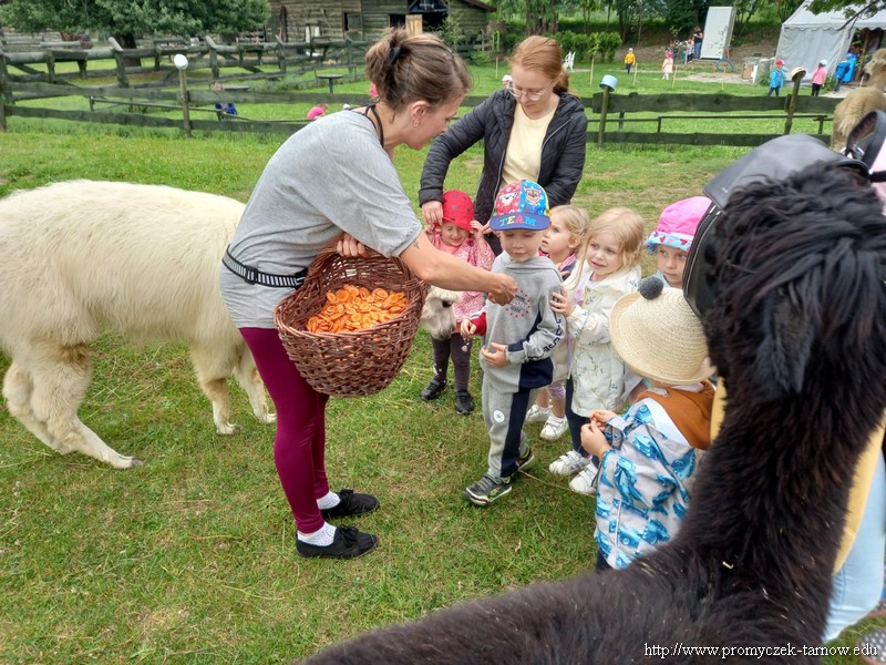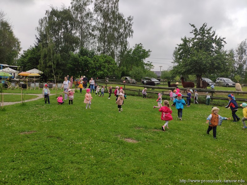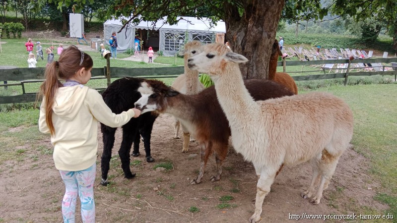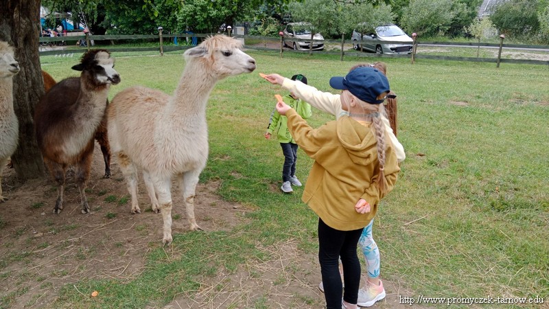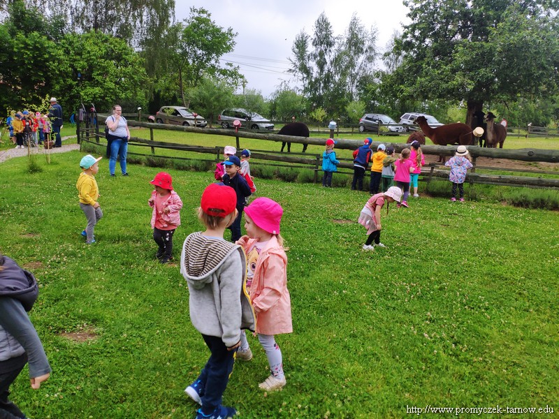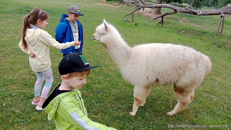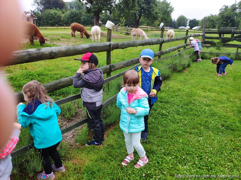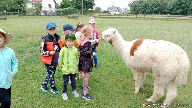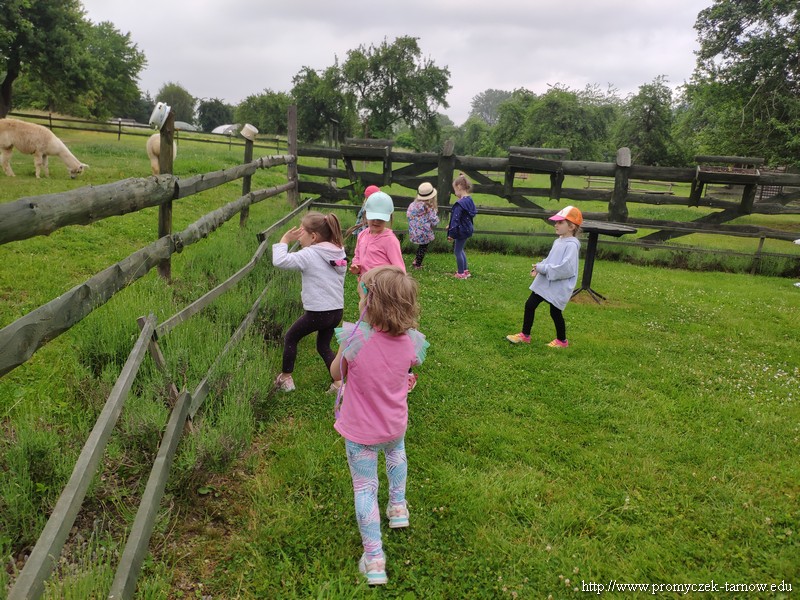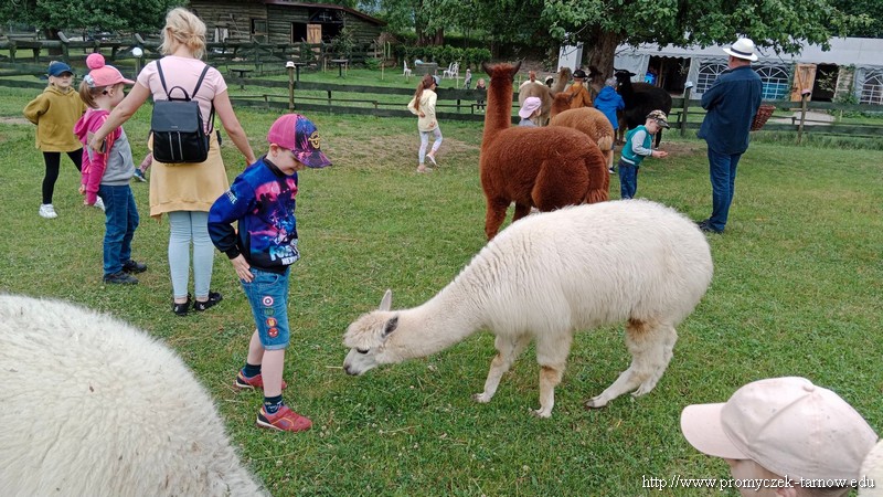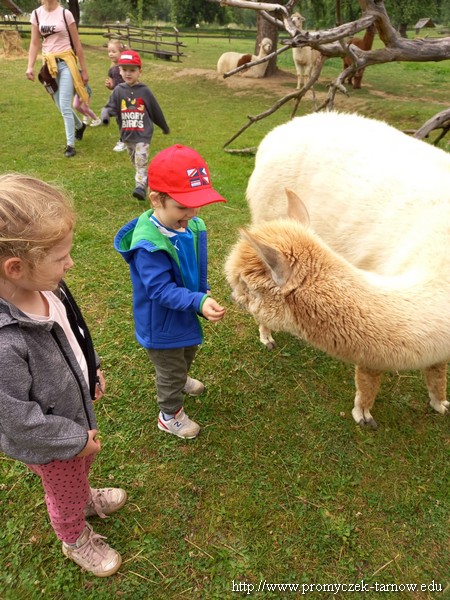 Dnia 10 czerwca, odbyła się wycieczka przedszkolna do pięknego miejsca Jaśkowy sad w miejscowości Czchów. Wszystkie promyczki ochoczo przybyły rano do przedszkola, aby zaraz po śniadaniu udać się autokarem na wycieczkę. Niecierpliwe przedszkolaki wypatrywały przez okno gdzie jedziemy. Po dojechaniu na miejsce przywitał nas miły Pan, który opowiedział o alpakach -skąd pochodzą, jakie mają zwyczaje i jak trzeba się przy nich zachować. Po wysłuchaniu krótkiego przemówienia promyczki zostały zaproszone na poczęstunek - pyszna lemoniadę oraz babeczkę z czekoladą. gdy juz wszystkie promyczki miały silę na spotkanie z alpakami pan gospodarz wziął pod rękę koszyk z marchewkami i zaprosił dzieci do zwierząt. Wszystkie przedszkolaki ochoczo karmiły alpaki oraz głaskały ich miękkie futerko. Na zakończenie każdy dostał mały kaktusik oraz naklejkę z alpaką. Wszystkie dzieci szczęśliwe i zmęczone udały się z paniami do przedszkola. Mamy nadzieje, że za rok wycieczka będzie równie udana :)