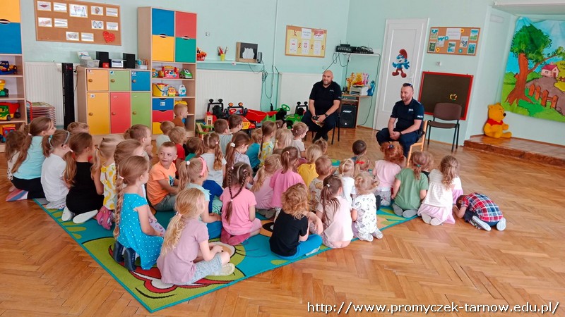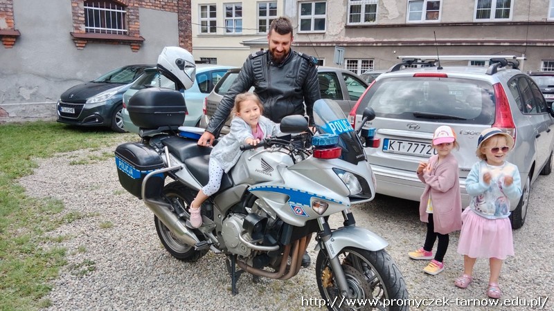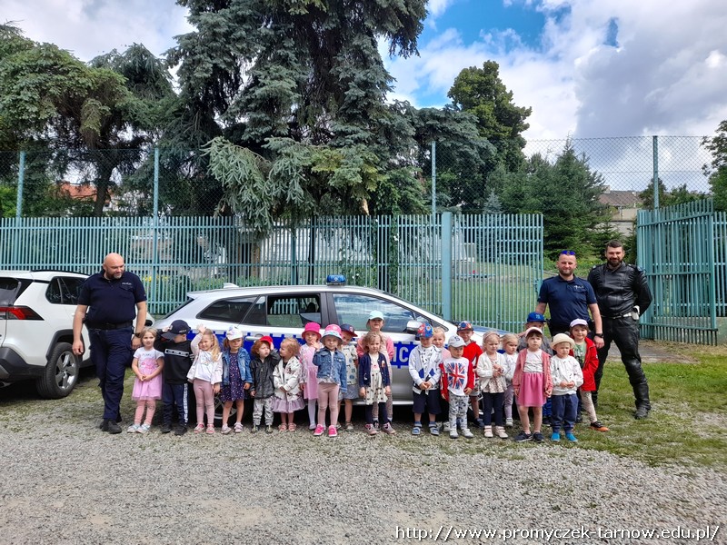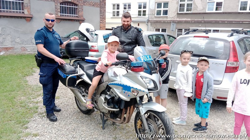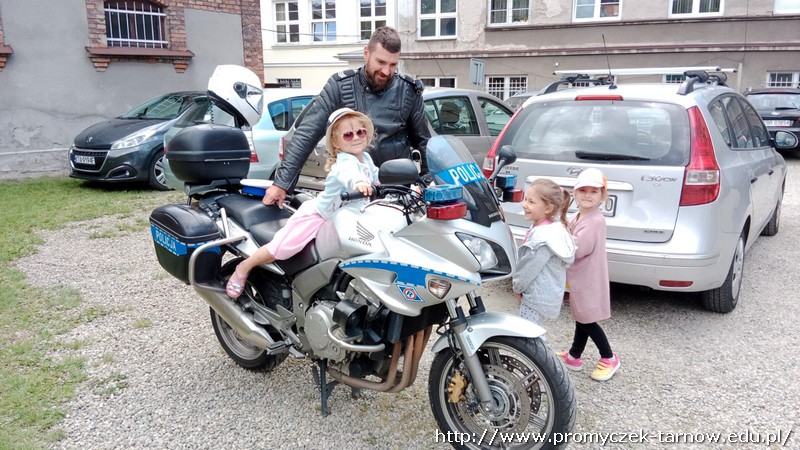 W dniu 21 czerwca po raz kolejny nasze przedszkole odwiedzili panowie policjanci. Spotkanie rozpoczęło się od przypomnienia zasad bezpiecznego korzystania z różnego rodzaju zbiorników wodnych, bezpieczeństwa podczas wyprawy w góry oraz podstaw spędzenia bezpiecznych wakacji w mieście czy na wsi. Po krótkiej pogadance dzieci udały się na parking przedszkolny w celu oglądnięcia radiowozu policyjnego oraz motocykla. Życzymy wszystkim dzieciom oraz ich rodzicom bezpiecznych wakacji.