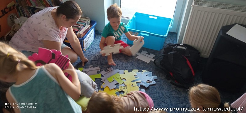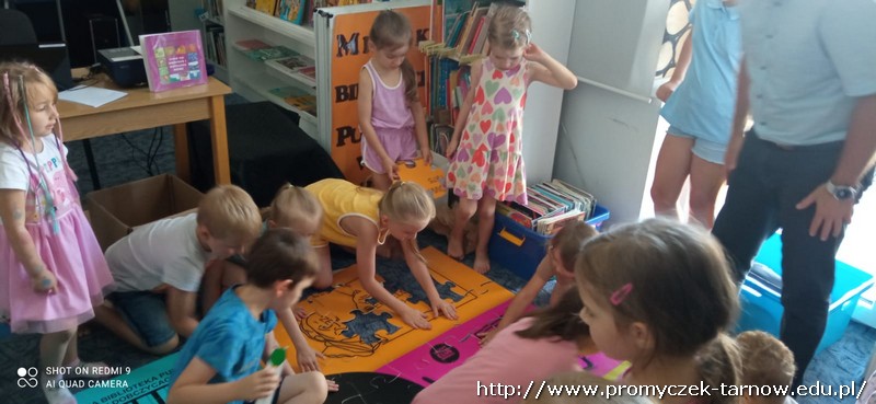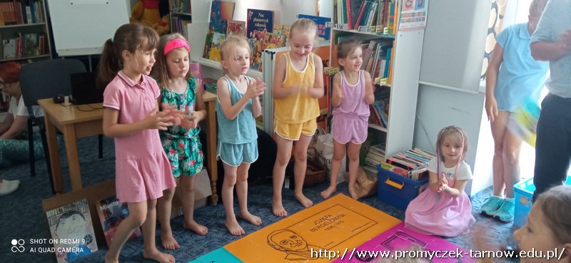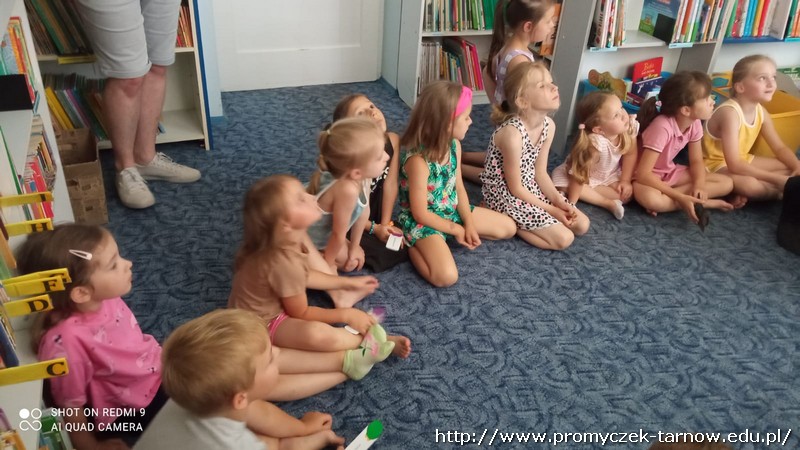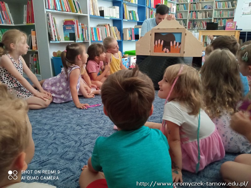 W ubiegły czwartek przedszkolaki ze starszej grupy udały się do Miejskiej Biblioteki Publicznej przy ul. Staszica. Dzieci spotkały się z panem Pawłem - bibliotekarzem pracującym w bibliotece w Dobczycach. Prowadzący opowiedział co można robić w bibliotece i w jaki sposób można pożyczyć książkę. Przedszkolaki rozwiązywały mnóstwo zagadek i łamigłówek, a także wysłuchały i obejrzały teatrzyk Kamishibai pt. "Bajka o paluszkach".