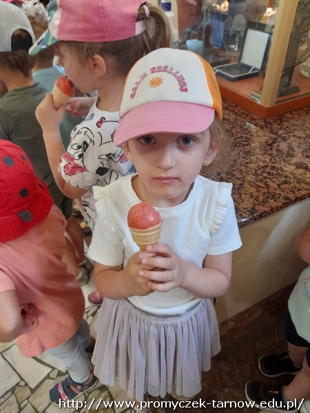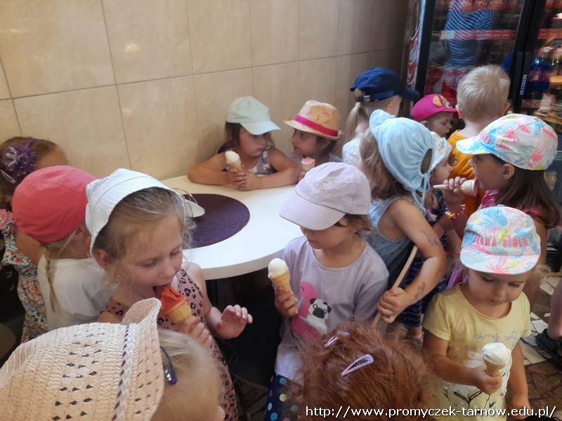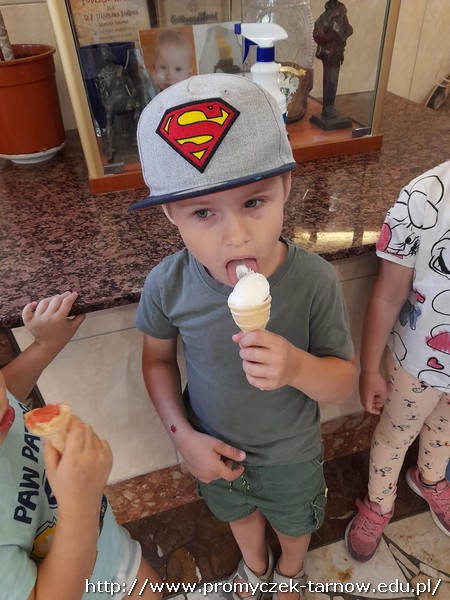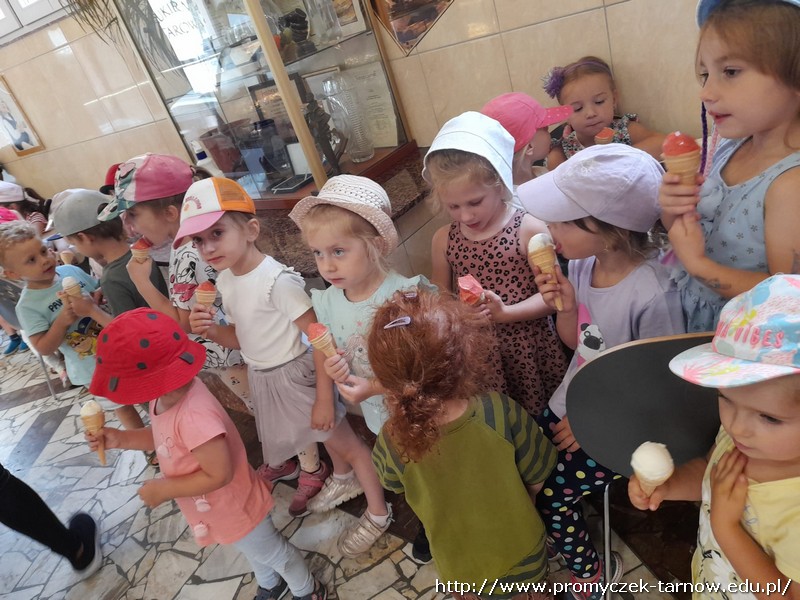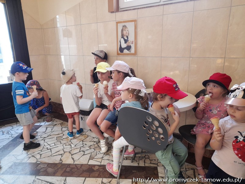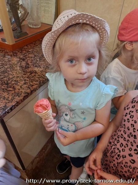 Na zakończenie przedszkolnej przygody w roku 2021/2022 Promyczki otrzymały zaproszenie na lody. Do cukierni zaprosił swoich kolegów Franek wraz ze swoimi rodzicami. Dzieci z opiekunami wybrały się na spacer połączony z wizytą w Cukierni Targowej i smakowaniem zimnego przysmaku. Każdy mógł wybrać swój ulubiony smak, po to, by wraz z ostatnim kęsem wafelka powiedzieć, że "było pyszne!". Przedszkolaki dziękują serdecznie Panu Andrzejowi za zaproszenie i miłe przyjęcie w cukierni!