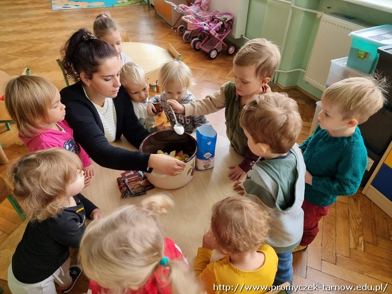 W ubiegłym tygodniu wszystkie przedszkolaki pożegnały lato i powitały nową porę roku- jesień. Tego dnia dzieci założyły ubrania w barwach jesieni. Dowiedziały się jakie dary niesie nam nowa pora roku oraz wzięły udział w jesiennych zabawach ruchowych. Na zakończenie dzieci wykonały przetwory na zimę, Zuchy zrobiły malinowe soki, natomiast Asy i Smyki jabłkowe kompoty.