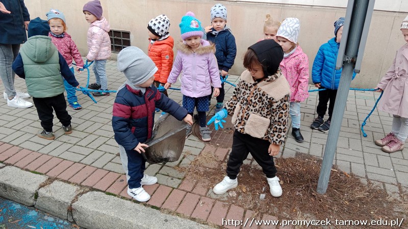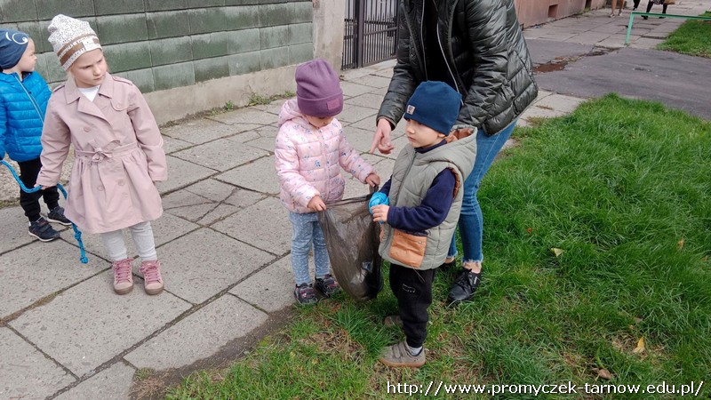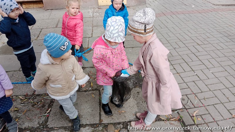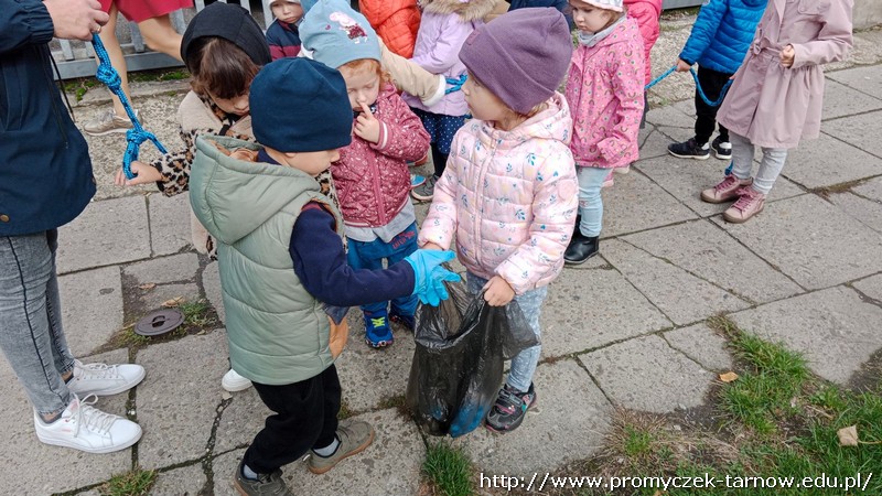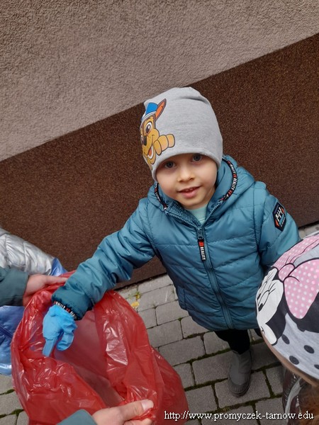 We wtorkowe przedpołudnie promyczki wzięły udział w jednej z największych akcji promujących ekologię w Polsce. Poprzez konkretne działanie zwracamy uwagę społeczeństwa na ważny temat, jakim niewątpliwie jest ochrona klimatu, postawa odpowiedzialności młodego pokolenia i dbałość o nasze lokalne środowisko.Uzbrojeni w rękawiczki i worki na śmieci udali się w okolice przedszkola, aby uporządkować m.in chodniki i płytę główną rynku miasta Tarnowa. Zarówno Zuchy, Asy jak i Smyki zabrały się ochoczo do sprzątania i już po chwili zapełnili worki na śmieci niepotrzebnymi odpadami. Po spacerze wszyscy udali się do przedszkola na pyszny obiad.