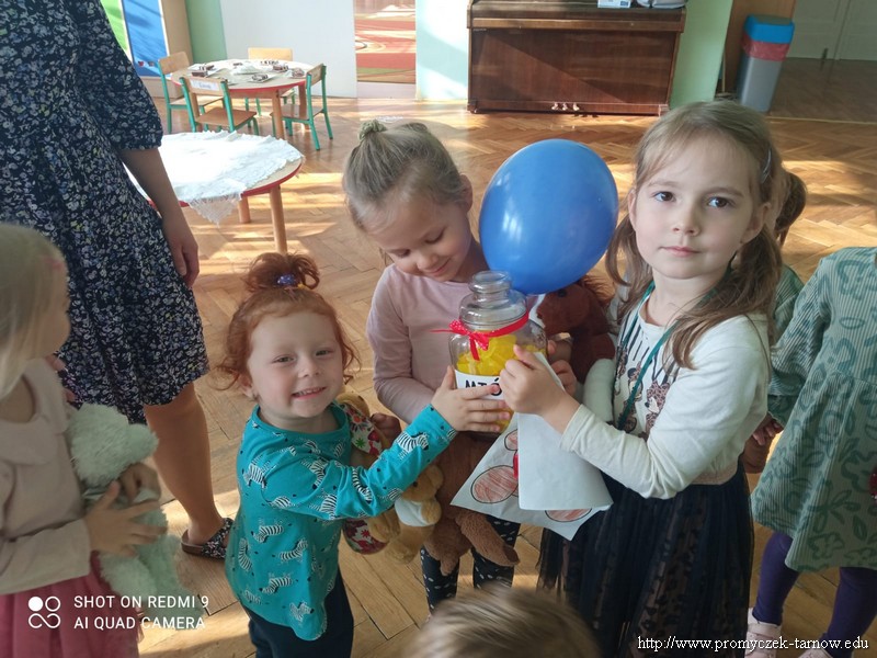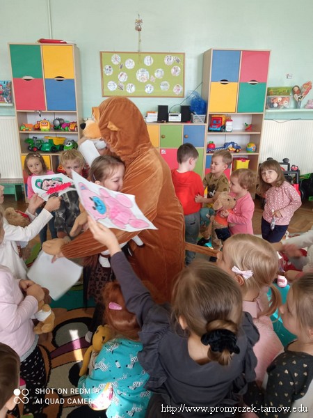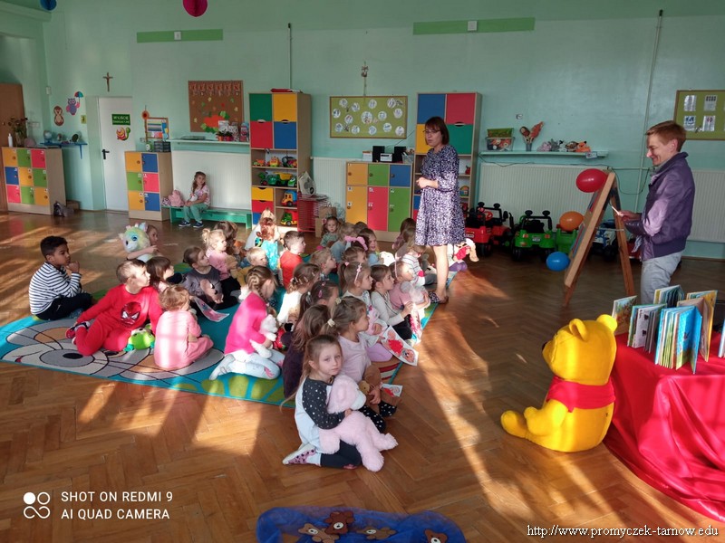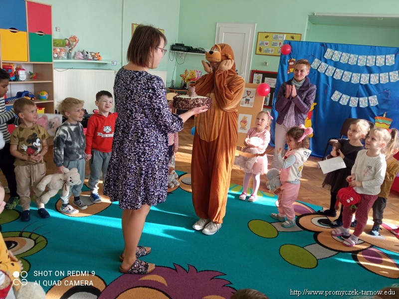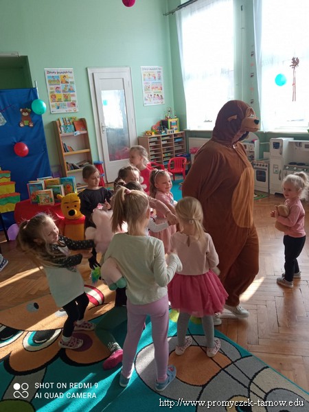 W miniony piątek w naszym przedszkolu odbyła się niezwykła uroczystość. Były to Urodziny Książkowego Misia. Akcja miała na celu promowanie czytelnictwa wśród dzieci. Tego dnia dzieci przyniosły do przedszkola swoje ukochane misie, a na urodzinowej imprezie pojawił się sam solenizant Książkowy Miś. Dzieci tańczyły i bawiły się w rytm ulubionych misiowych piosenek, odgadywały z jakiej bajki pochodzi dany miś oraz musiały rozpoznać tytuł bajeczki po tytułowej piosence. Tego dnia do przedszkola przybyła również Pani z Miejskiej Biblioteki Publicznej im. Juliusza Słowackiego w Tarnowie, która przeczytała dzieciom bajeczkę pt.: "Edzio i piękna przygoda" mówiącej o wspaniałej przyjaźni misia Antoniego i wiewiórki imieniem Edzio. Na koniec wszystkie dzieci zaśpiewały Książkowemu Misiowi sto lat, wręczyły prezenty oraz pyszny torcik. To były wspaniałe urodziny.