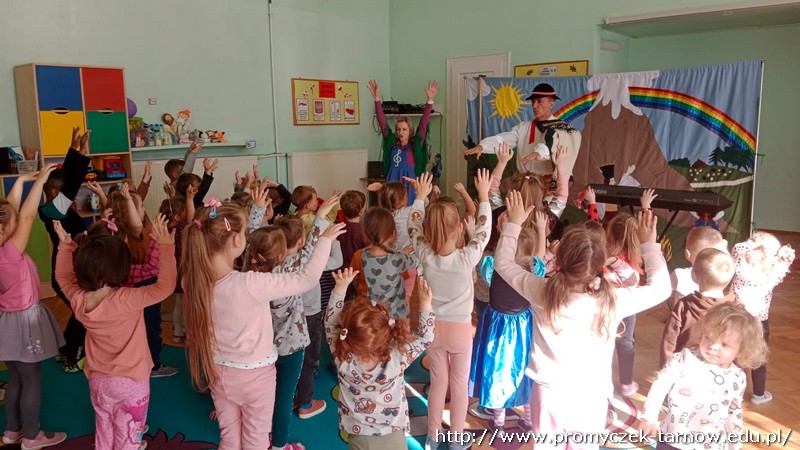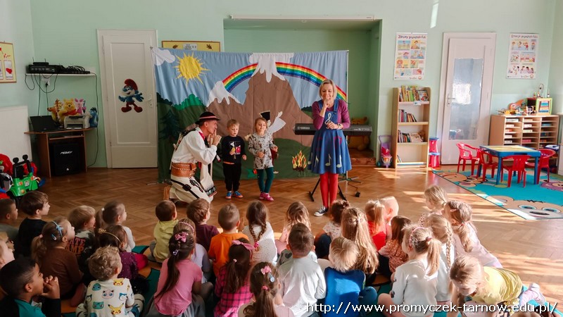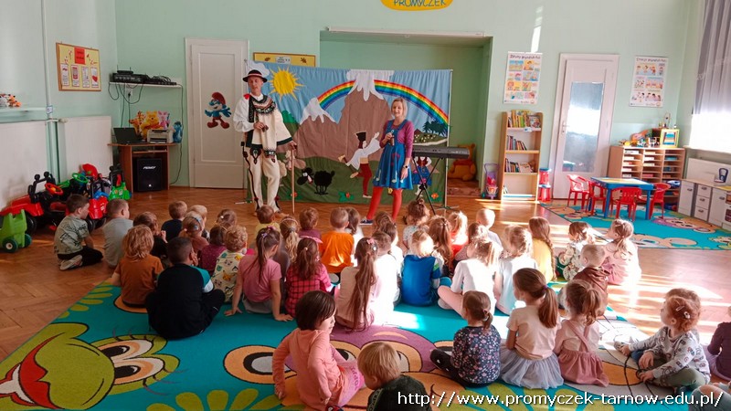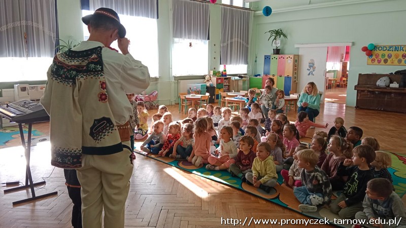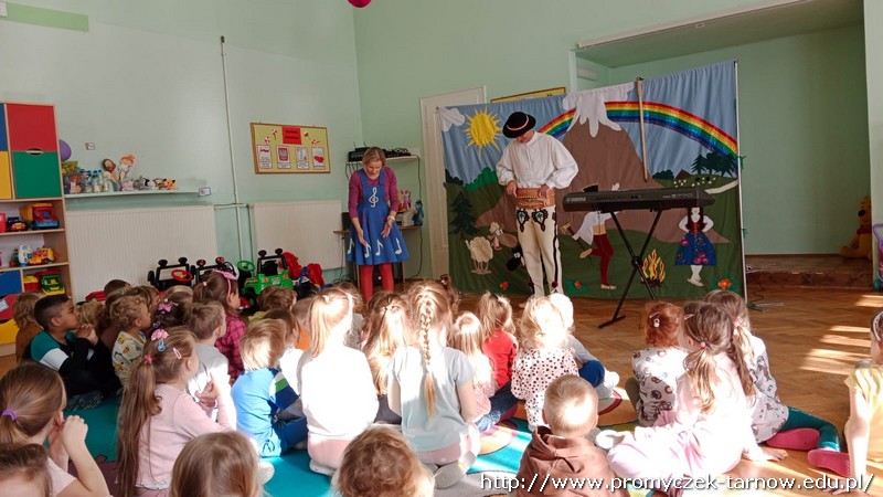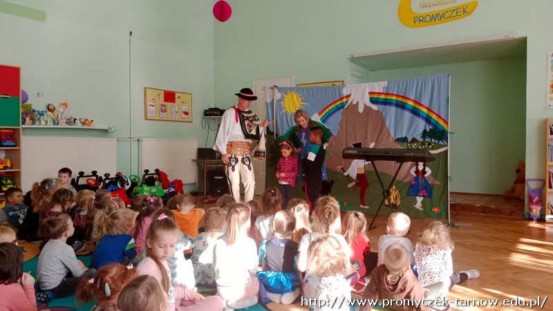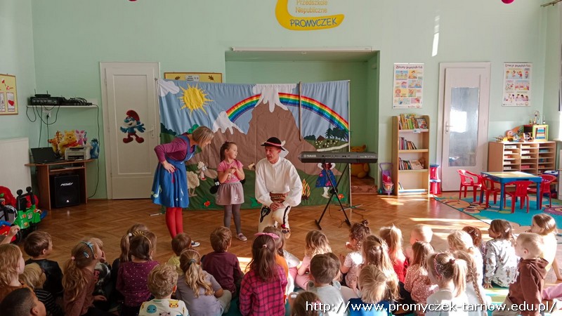 "Bemol i Wiolinka" to profesjonalny teatr muzyczny z Krakowa. Każdego roku gości w naszym przedszkolu z nowym programem. Dzieci mogą poznać muzykę i zwyczaje różnych regionów Polski i świata. Dzieci mają okazję do słuchania muzyki i śpiewu na żywo, rozwijają wrażliwość muzyczną, biorą udział w zabawach muzycznych, poznają melodie, tańce, piosenki, uczą się prostych układów tanecznych, a przede wszystkim dobrze się bawią i miło spędzają czas w przedszkolu. Uzupełnieniem muzyki jest bajka, wiersz i przepiękne stroje.Tym razem 3 listopada w muzyczną podróżą, w którą zostały zabrane dzieciaki były nasze polskie góry Tatry. Aktorzy przybliżyli nam góralskie tradycje, gwarę góralską, włączali do śpiewu góralskich pieśni, uczyli tańca góralskiego. Każdy wybrany przedszkolak mógł wziąć udział w różnych konkursach. Cały występ owocował w dawkę sporej ilości humoru i dobrej zabawy.