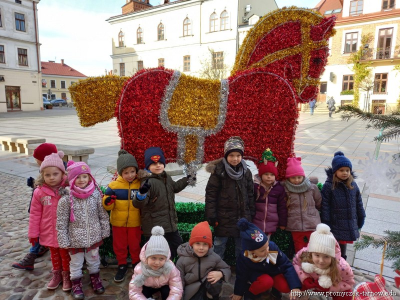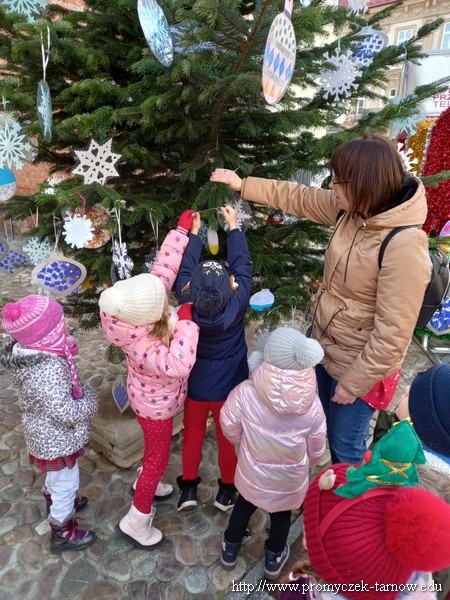Zuchy i Asy już od jakiegoś czasu przygotowywały świąteczne ozdoby w przedszkolu. Wszystko po to, by 5 grudnia udać się na spacer po tarnowskim rynku i przyozdobić choinki, które pojawiły się koło ratusza. Przedszkolaki z wielką radością zawiesiły swoje prace na bożonarodzeniowym drzewku, a później korzystając z okazji podziwiały iluminacje świetlne przygotowane z okazji świąt.