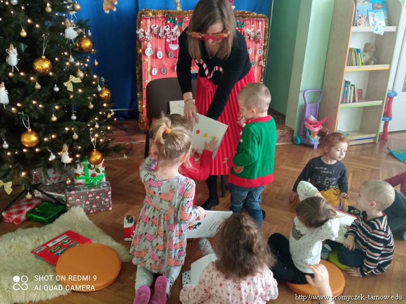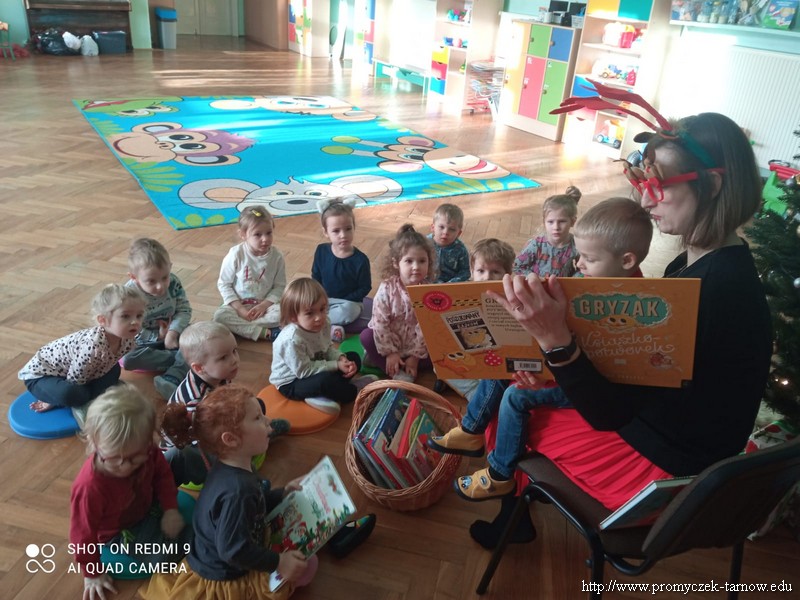 W ramach akcji Cała Polska Czyta Dzieciom naszą grupę Smyki odwiedziła mama Jasia - Pani Marta. Przeczytała ona dzieciakom kilka fantastycznych opowiadań m.in. o Gryzaku i Zaczarowanej kropce. Pokazała również Smykom kilaka bajek o tematyce świątecznej. Musimy przyznać, że dzieci słuchały z uwagą wszystkich czytanych utworów, za co Nasz Gość nagrodził je pięknymi naklejkami.