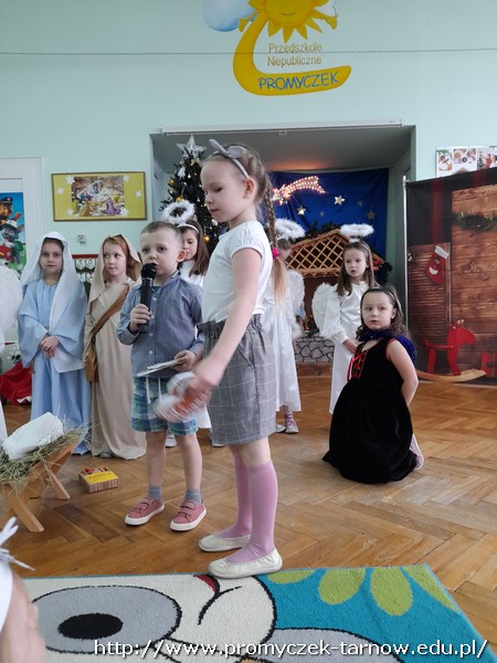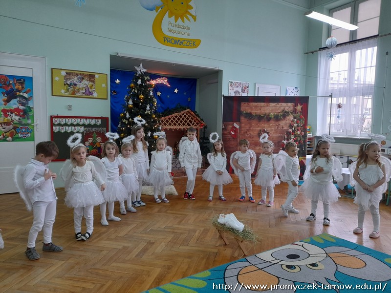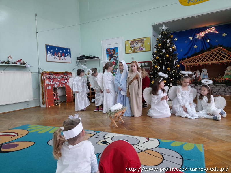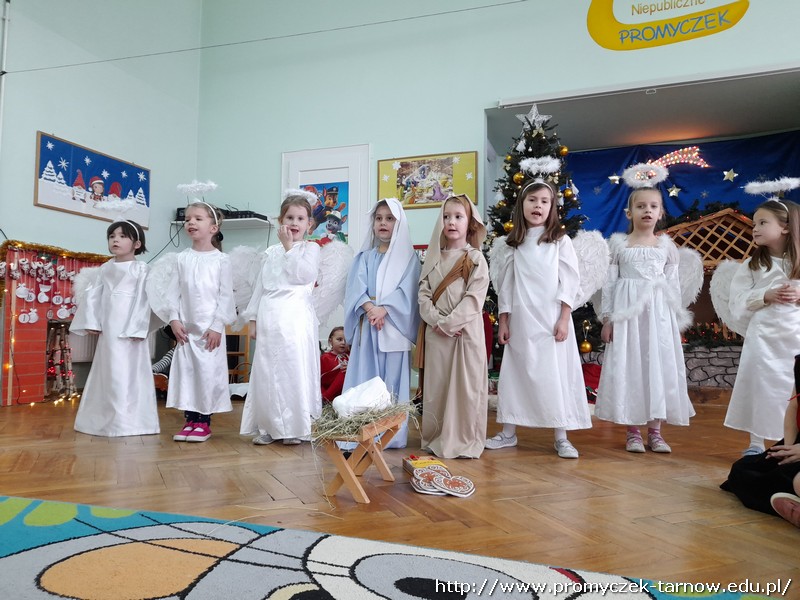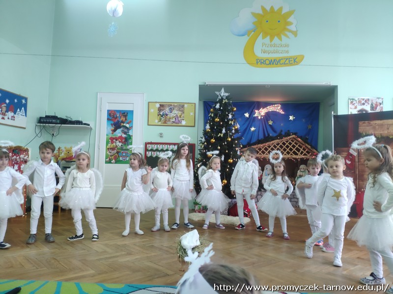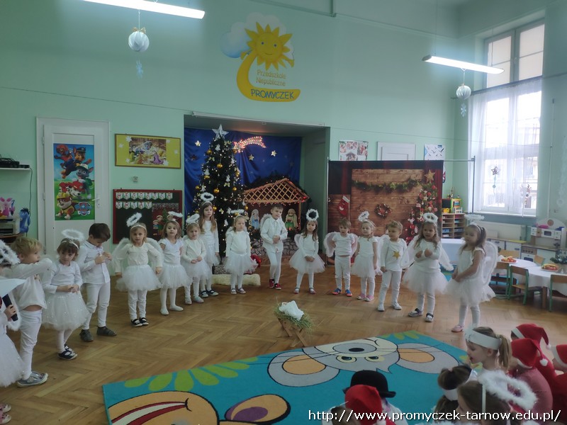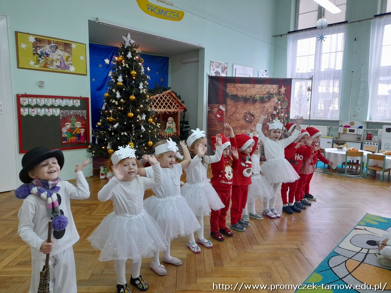 Wigilia rozpoczyna Święta Bożego Narodzenia, rodzinne święta pełne pięknych tradycji i podniosłeo nastroju. To najbardziej uroczysty wieczór w całym roku, wieczór wzajemnego zbliżenia. lekcja miłości, zadumy i refleksji. Ponieważ przedszkole jest dla dzieci jak drugi dom, to w Promyczku odbyła się wspólna wigilia i kolędowanie, a dzieci przygotowały piękne występy dla zaproszonych gości. Na początku wystąpiły smyki, które przeniosły nas w świat małego bałwanka. Następnie zaprezentowała się grupa asów, którzy wystąpili z przedstawieniem świątecznym pełnym śpiewu kolęd i tańca. Na koniec grupa zuchy wystawiła jasełka w bajkowej odsłonie. Później wszyscy staneliśmy w kręgu aby przesłać sobie iskierkę i połamać się opłatkiem, następnie wszyscy zasiedli razem na wigilijną ucztę.