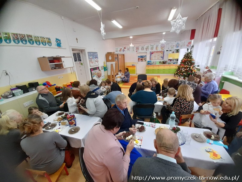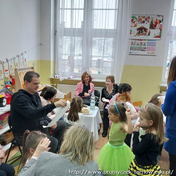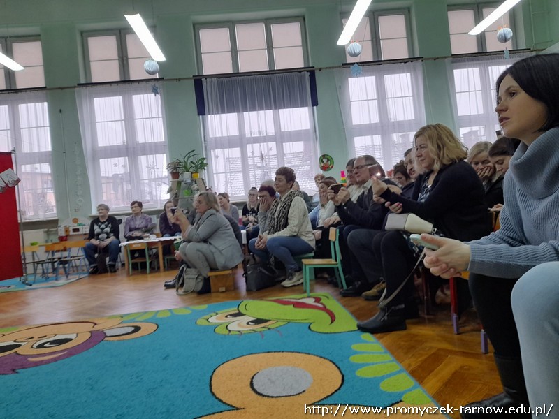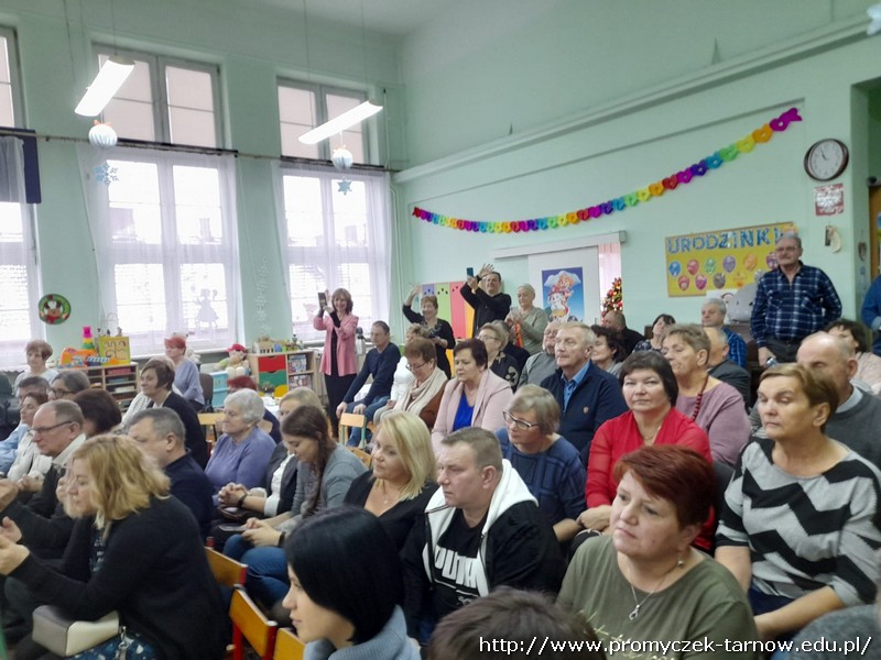 W ubiegłym tygodniu do Promyczka zawitali ważni goście - babcie i dziadkowie naszych przedszkolaków. Dzieci ubrane w piękne stroje stanęły na scenie, aby pięknie zaśpiewać i wyrecytiwać wierszyki. Nasi goście byli zachwyceni grą aktorską i fantastycznym wokalem swoich wnuczków i wnuczek. Po wystepach wszyscy udali sie do swoich sal na poczęstunek przygotowany przez nasze panie kucharki. Na sam koniec chłopcy i dziewczynki wręczyli swoim dziadkom laurki własnoręcznie robione przez ostatnie tygodnie w przedszkolu. Odwiedziła nas też mama Klary i Kamili, która przeprowadziła wywiad z dziećmi i dziadkami. Link do całego nagrania poniżej. Dziękujemy wszystkich babciom i dziadkom za obecność i zapraszamy za rok!