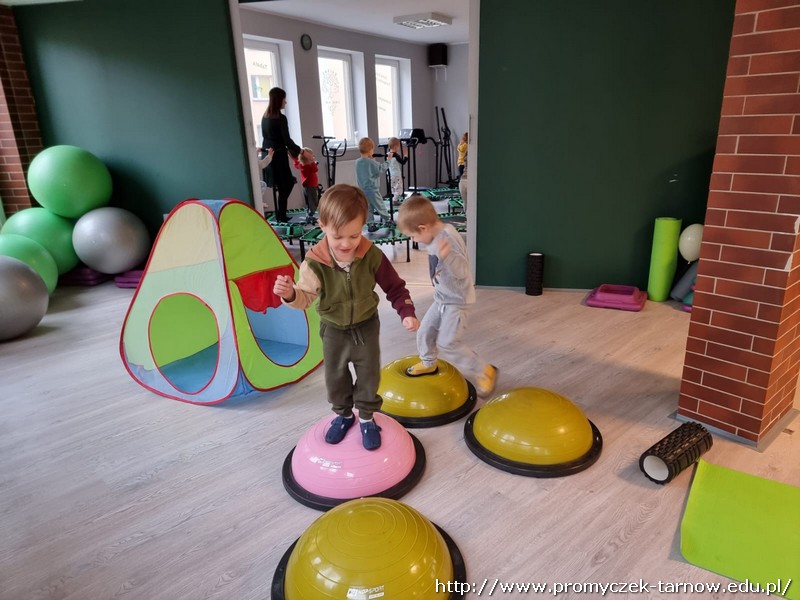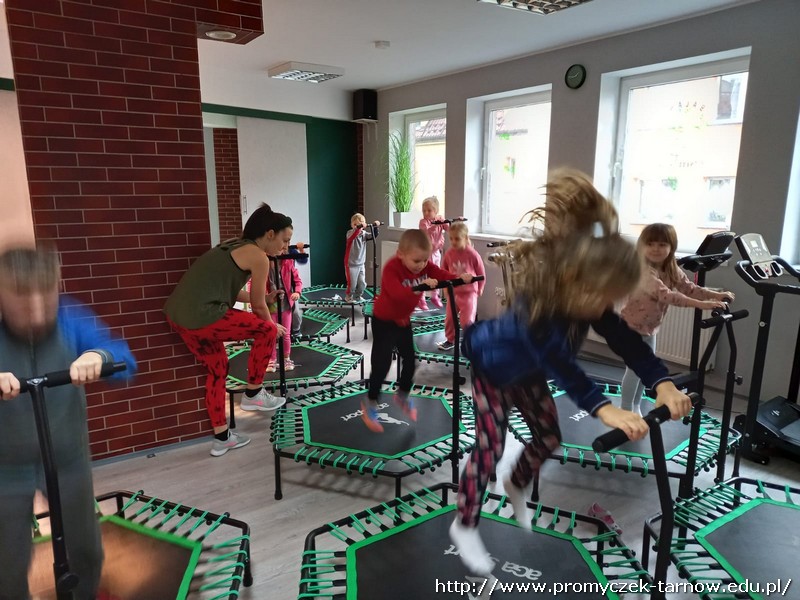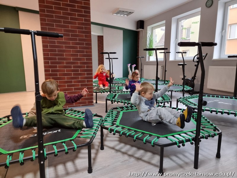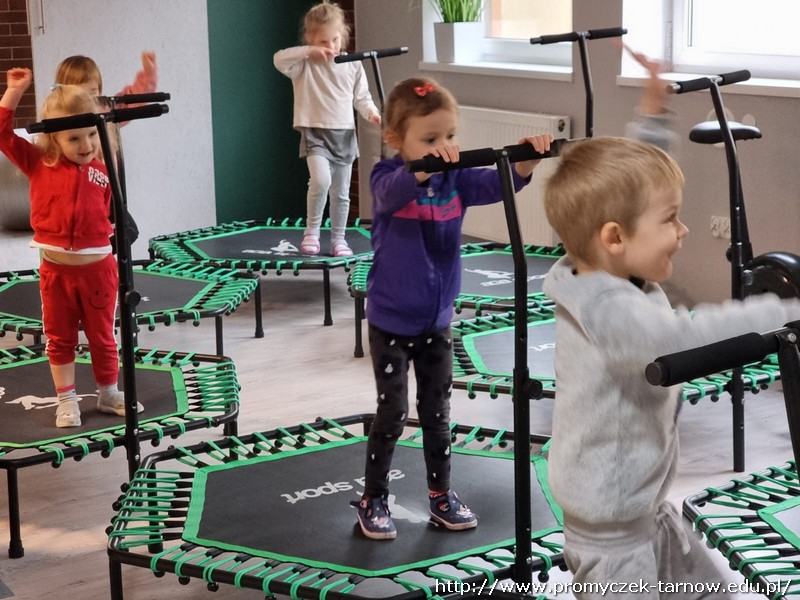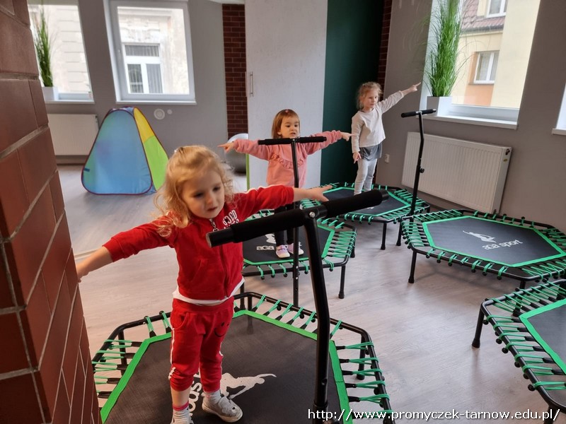 W tym tygodniu nasze przedszkolaki wybrały się do Klubu Fitness "Balans". Na miejscu czekała na dzieci uśmiechnięta Pani Monika, która przeprowadziła z dziećmi zajęcia ruchowe na trampolinach. Dzieci dowiedziały się jak ważny jest ruch w naszym życiu oraz bezpieczeństwo podczas wykonywania ćwiczeń. Oprócz trampolin dzieci miały okazję spróbować swoich sił na ścieżce sensorycznej. Dzieci z ogromnym entuzjazmem uczestniczyły w zaproponowanych aktywnościach. To była wspaniała zabawa.