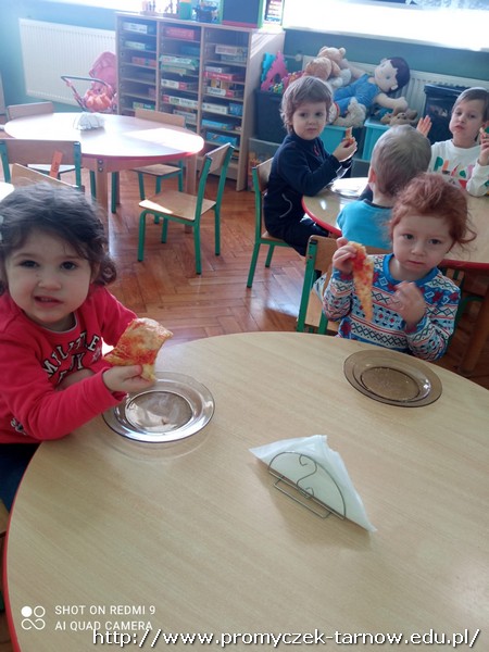 W naszym przedszkolu 9 lutego świętowaliśmy dzień pizzy. Z tej okazji wychowawcy przeprowadzili pogadankę o zawodzie kucharza, a także zapytały dzieci czy znają przepis na ciasto na pizzę. Następnie na starsze i młodsze dzieci czekały puzzle. Zadaniem przedszkolaków było wycięcie puzzli po liniach i przyklejenie dobrze ułożonych puzzli na kartce. Na sam koniec za dobrze wykonane zadanie na wszystkich czekała pyszna pizza :)
