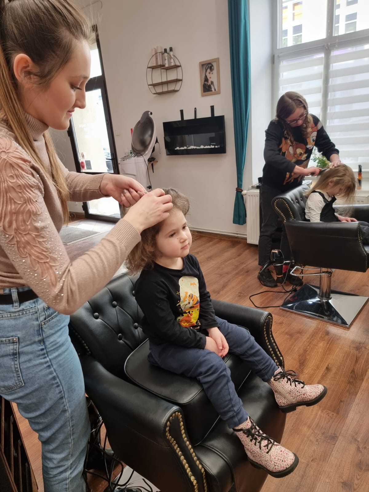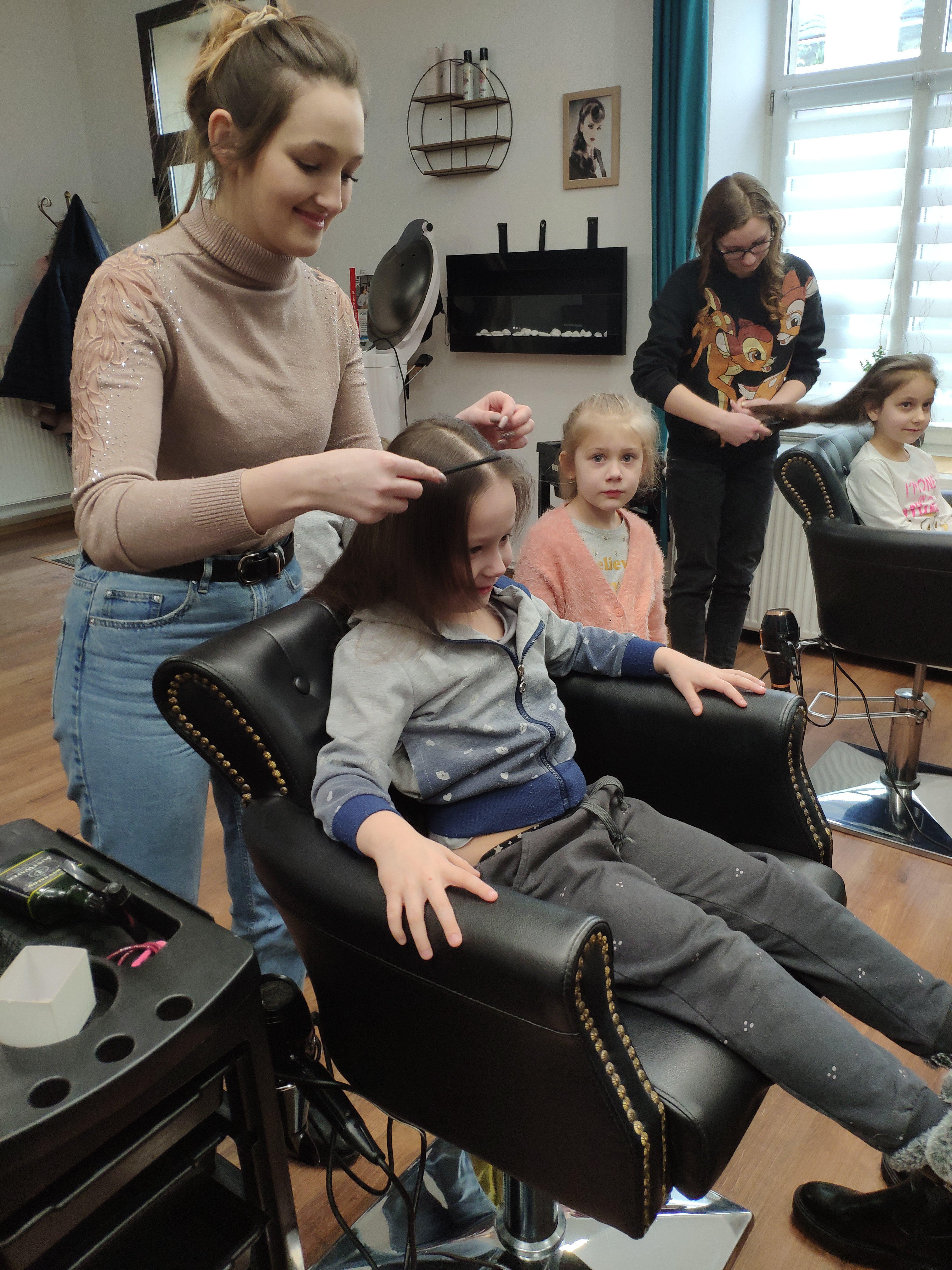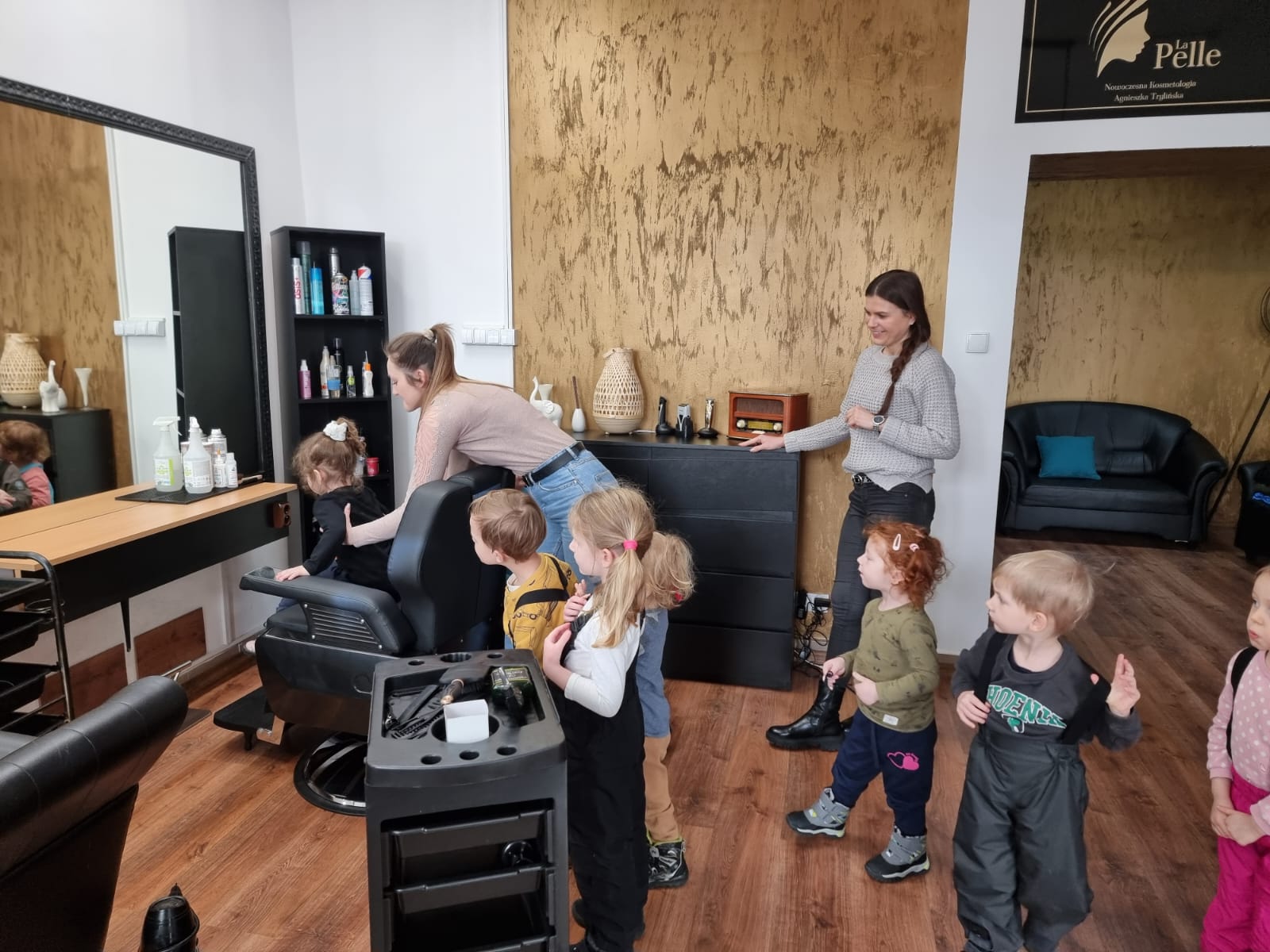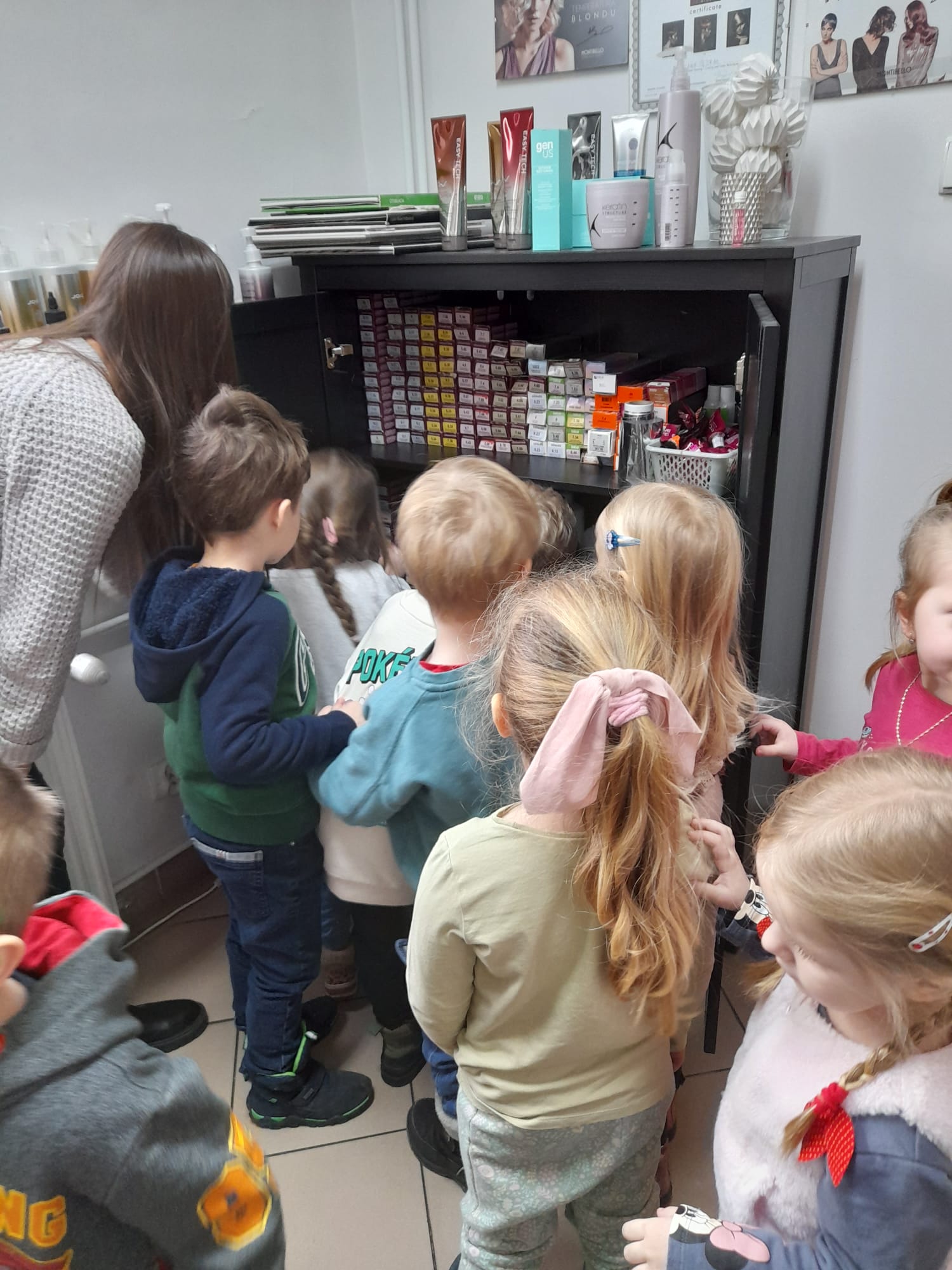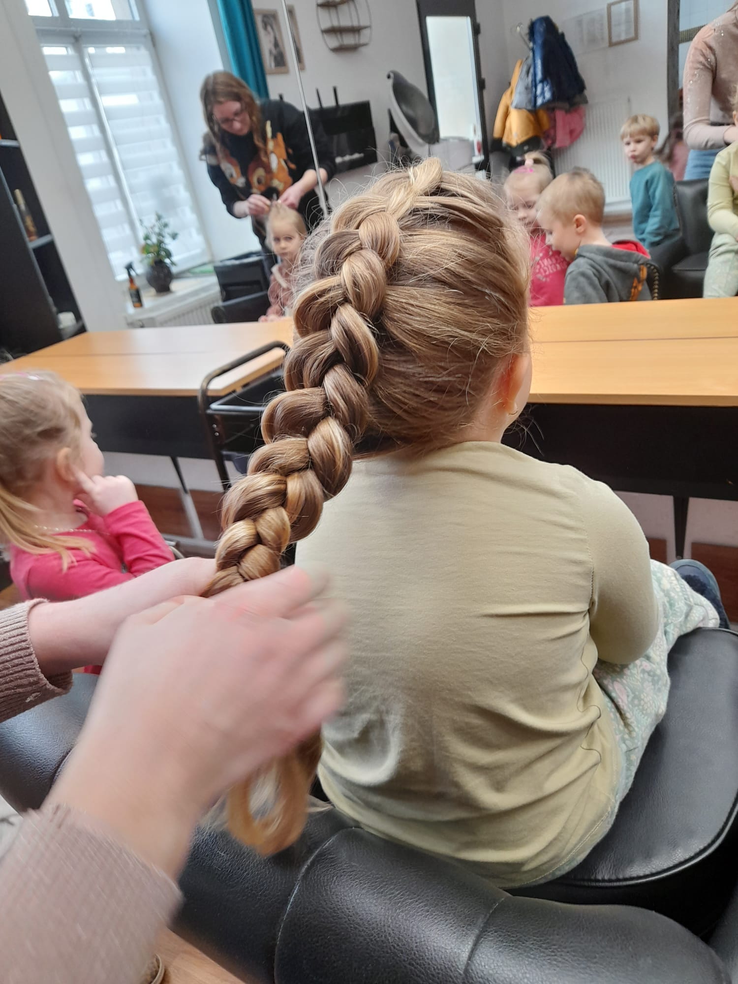 Czym zajmuje się fryzjer? Jak wygląda salon fryzjerski? Na te oraz wiele innych pytań nasze przedszkolaki usłyszały odpowiedzi podczas wycieczki do sąsiadującego z przedszkolem salonu fryzjerskiego. Celem naszego wyjścia było poznanie zawodu fryzjera, miejsca, w którym pracuje i jego atrybutów. Przemiłe panie fryzjerki przygotowały bardzo wartościową prelekcję, pokazały akcesoria, których używają w swojej codziennej pracy oraz uczesały chętne dzieci. Na włosach dziewczynek pojawiły się piękne warkocze, chłopcy próbowali swoich sił w tej profesji, a na koniec odbył się konkurs podsumowujący wizytę w salonie, w efekcie którego dzieci wróciły do przedszkola ze wzbogaconą wiedzą o fryzjerstwie oraz z nagrodami. Serdecznie dziękujemy Paniom ze Studio Retro za miłe przyjęcie Promyczków!