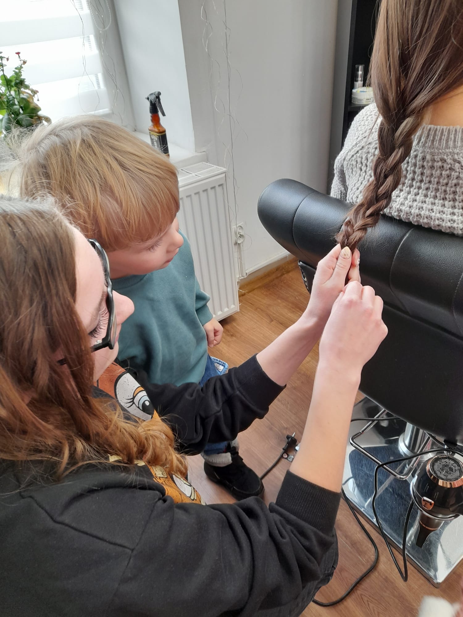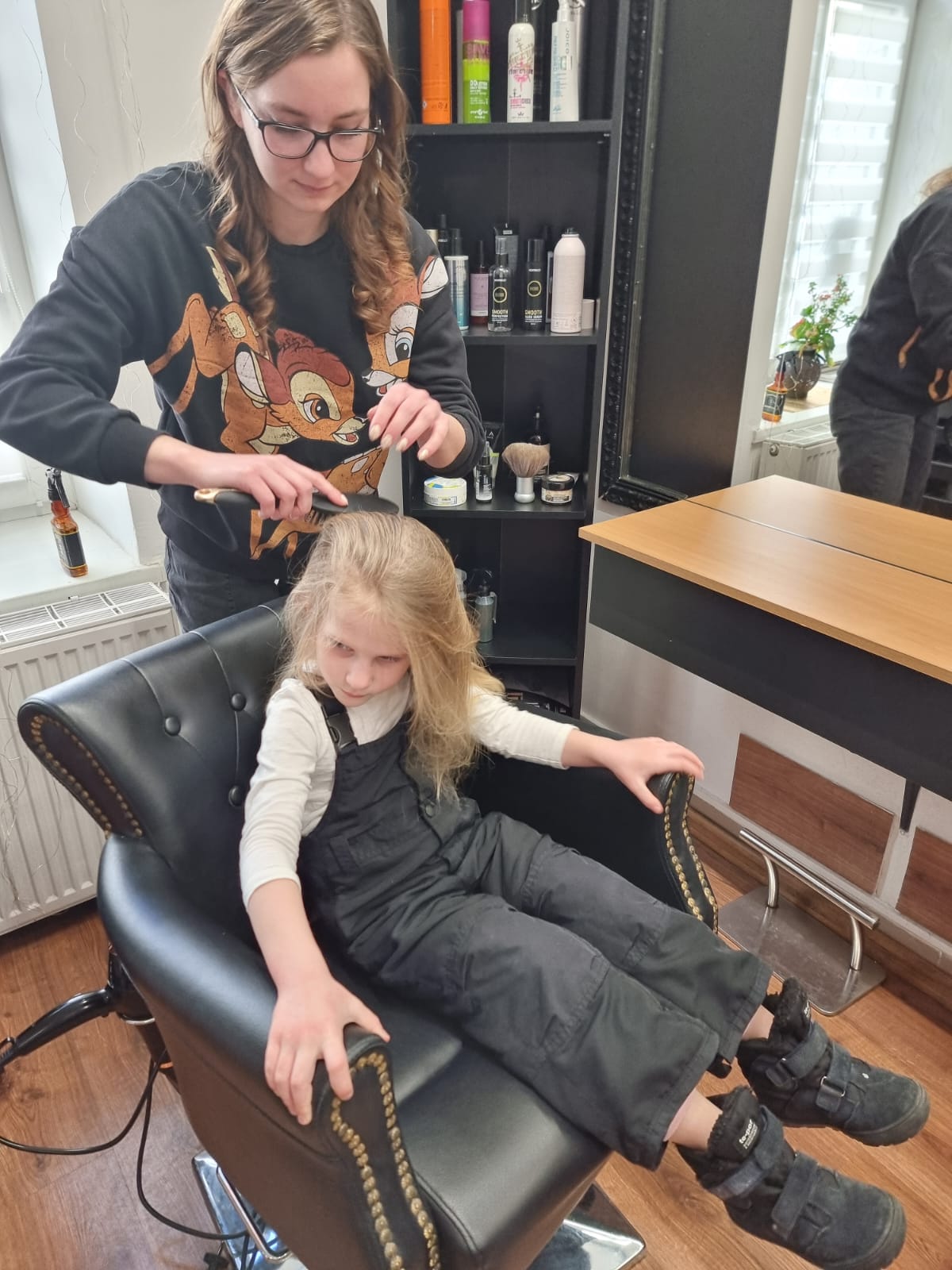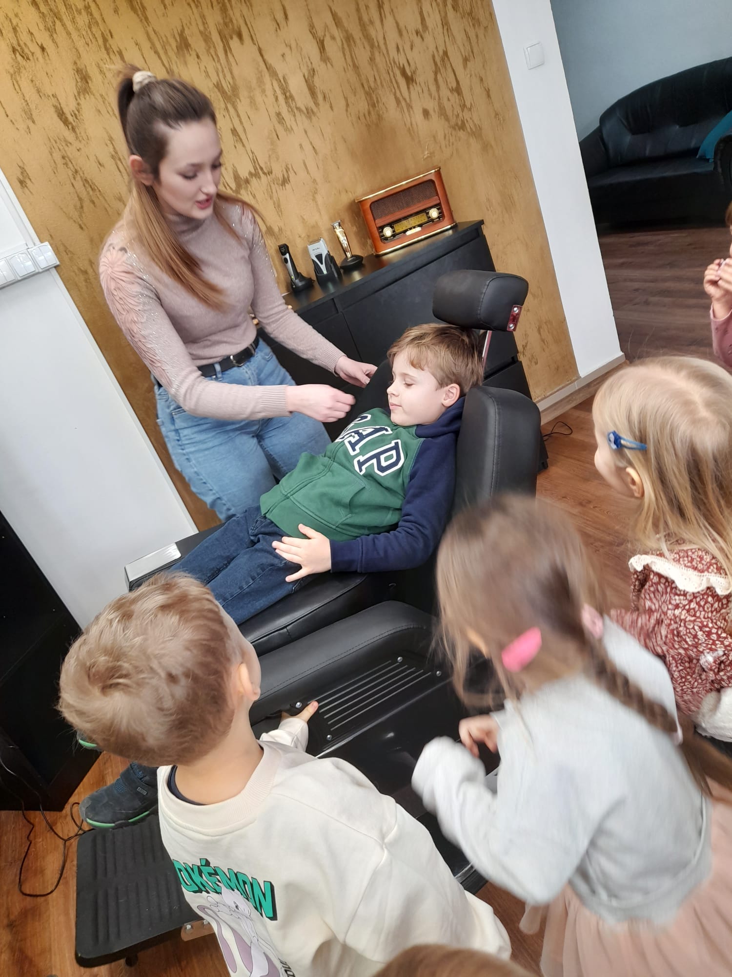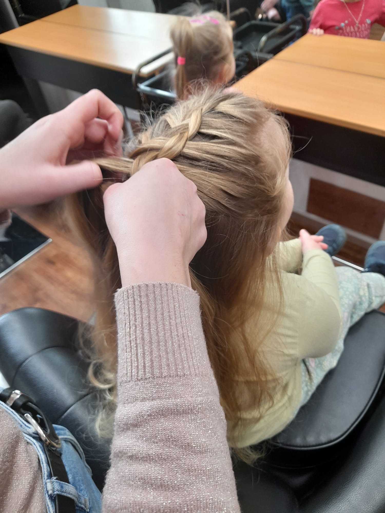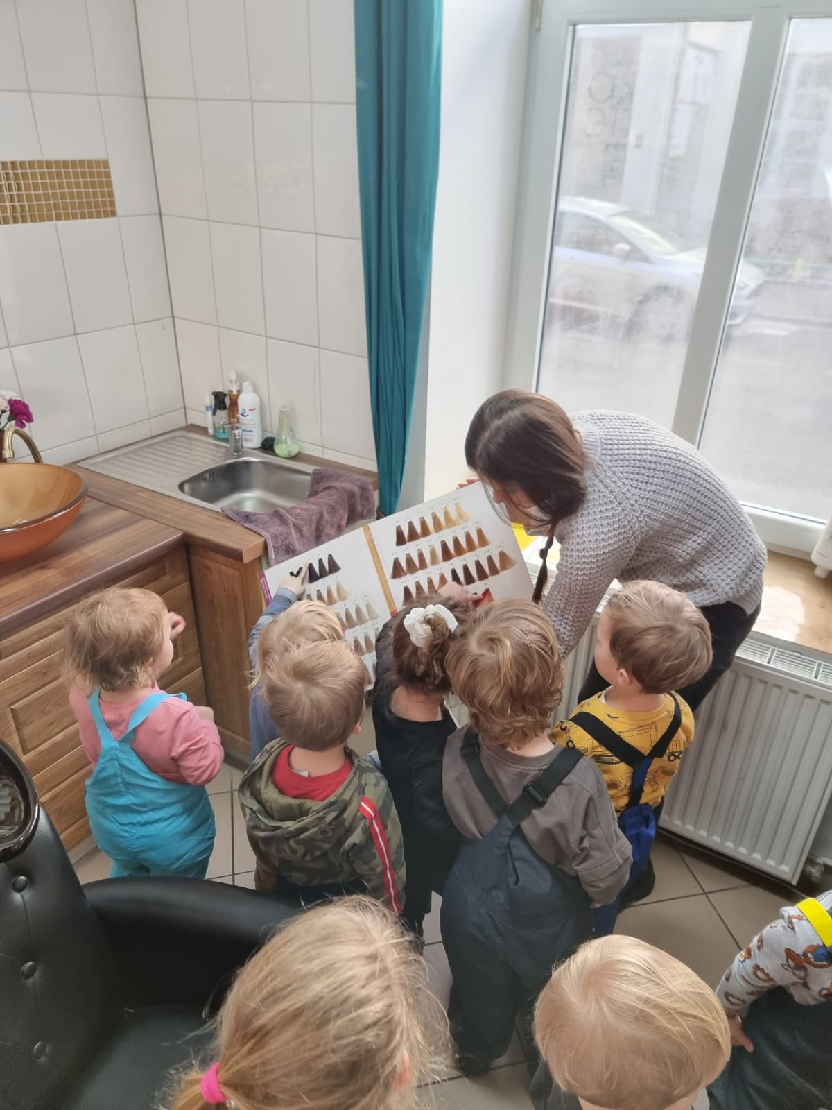 Czym zajmuje się fryzjer? Jak wygląda salon fryzjerski? Na te oraz wiele innych pytań nasze przedszkolaki usłyszały odpowiedzi podczas wycieczki do sąsiadującego z przedszkolem salonu fryzjerskiego. Celem naszego wyjścia było poznanie zawodu fryzjera, miejsca, w którym pracuje i jego atrybutów. Przemiłe panie fryzjerki przygotowały bardzo wartościową prelekcję, pokazały akcesoria, których używają w swojej codziennej pracy oraz uczesały chętne dzieci. Na włosach dziewczynek pojawiły się piękne warkocze, chłopcy próbowali swoich sił w tej profesji, a na koniec odbył się konkurs podsumowujący wizytę w salonie, w efekcie którego dzieci wróciły do przedszkola ze wzbogaconą wiedzą o fryzjerstwie oraz z nagrodami. Serdecznie dziękujemy Paniom ze Studio Retro za miłe przyjęcie Promyczków!
