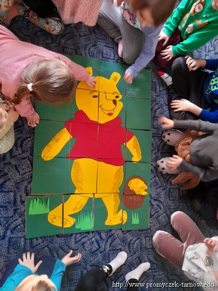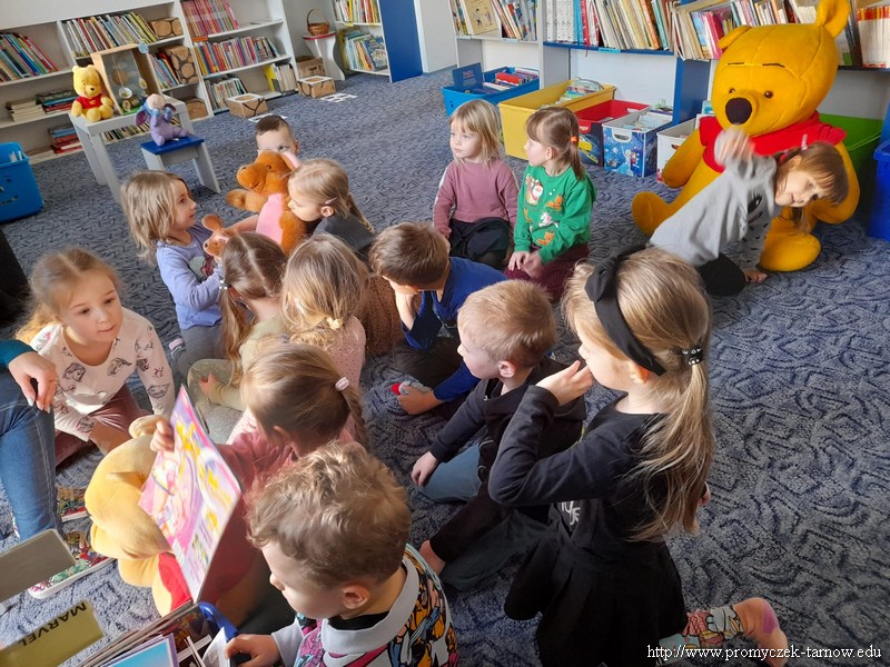 16 lutego Asy wybrały się do Miejskiej Biblioteki Publicznej. Tym razem uczestniczyły w zajęciach związanych z Kubusiem Puchatkiem. Dzieci wysłuchały fragmentów przygód ulubionego misia, układały wielkie puzzle, pokonały przeszkody, aby pomóc zdobyć miodek, a na koniec wykonały piękne portrety Kubusia. Za wykonane zadania Promyczki otrzymały dyplom czyniący ich Przyjacielami Kubusia Puchatka.