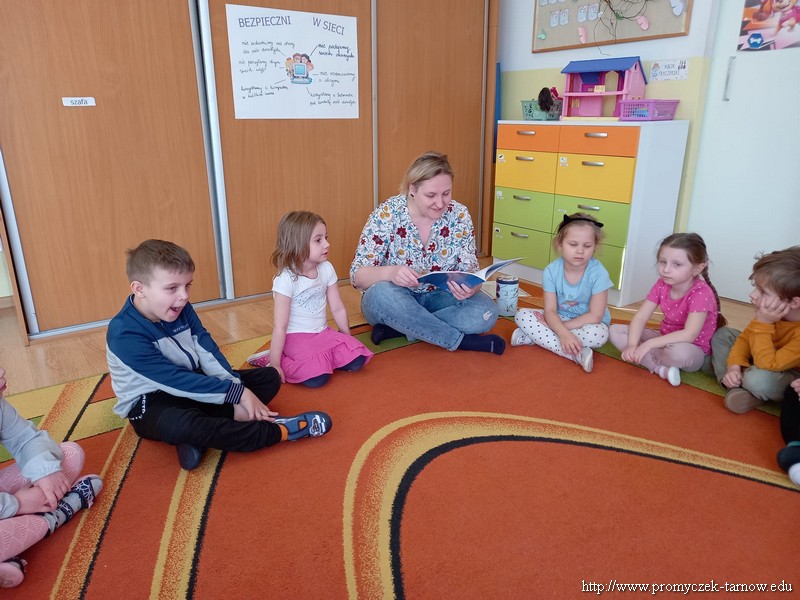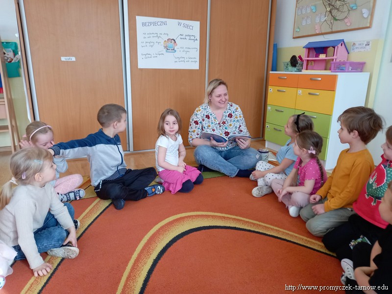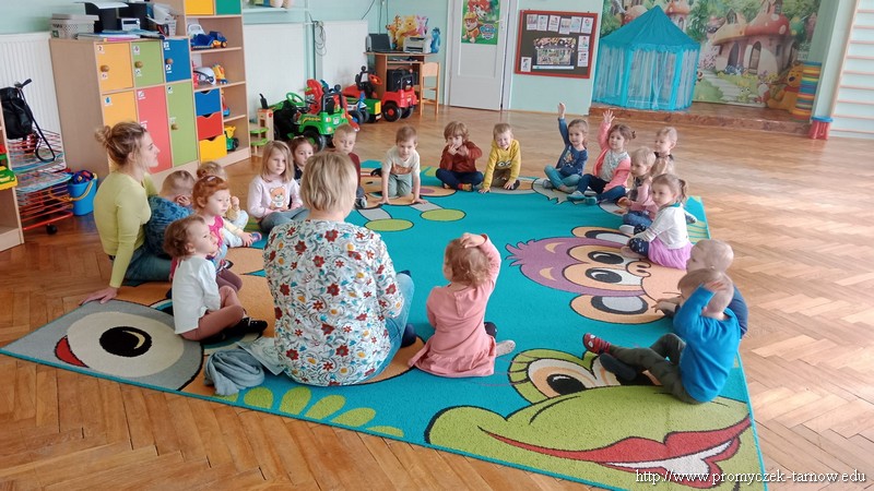 W ubiegłym tygodniu w przedszkolu powitaliśmy mamę Jasia z grupy Asów. Pani Patrycja jest psychologiem i przeprowadziła z dziećmi z całego przedszkola zajęcia o emocjach. Nasze Promyczki uważnie wysłuchały opowiadania, a później próbowały udzielić odpowiedzi na zadane pytania. Dzieci opowiadały w jakich sytuacjach czujemy np. złość, smutek, radość, zadowolenie. Wszyscy próbowali mimiką oraz gestem zobrazować daną emocję. Na koniec Pani Patrycja przypomniała wszystkim dzieciom, że nie ma złych emocji i wszystkie są nam potrzebne. Serdecznie dziękujemy Pani Patrycji za tak owocne i miłe spotkanie.