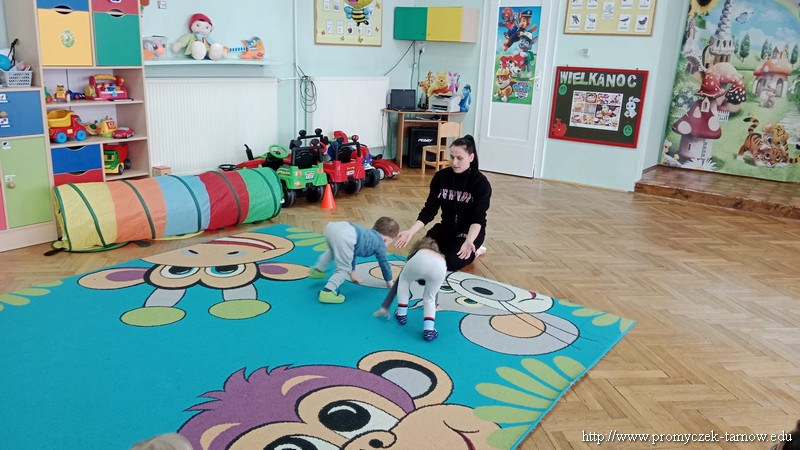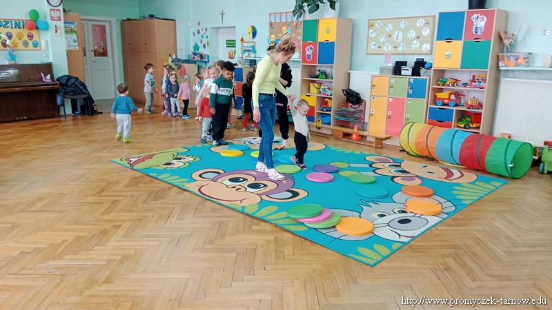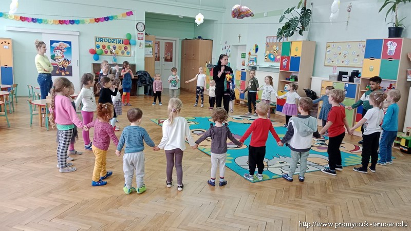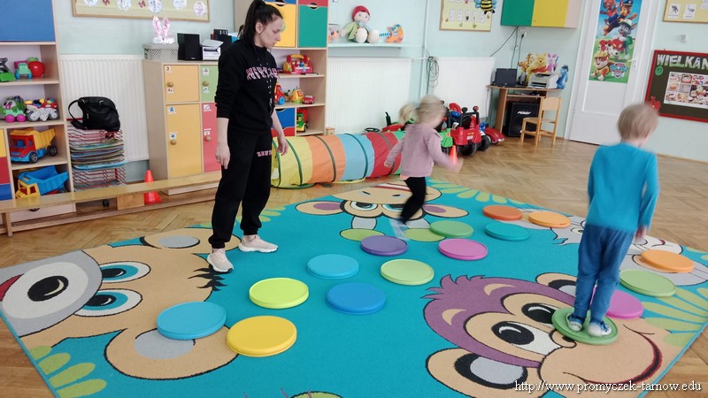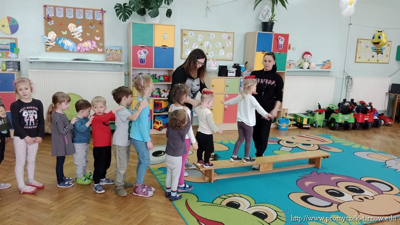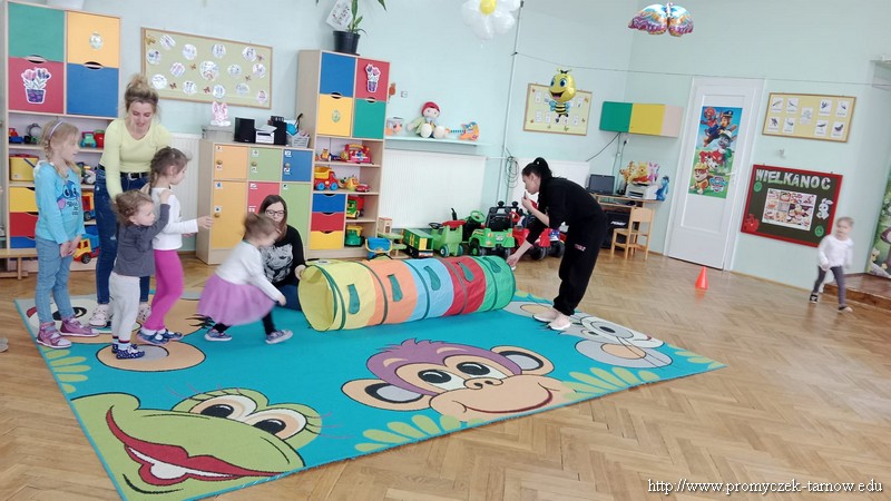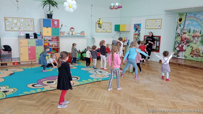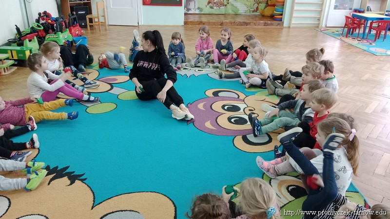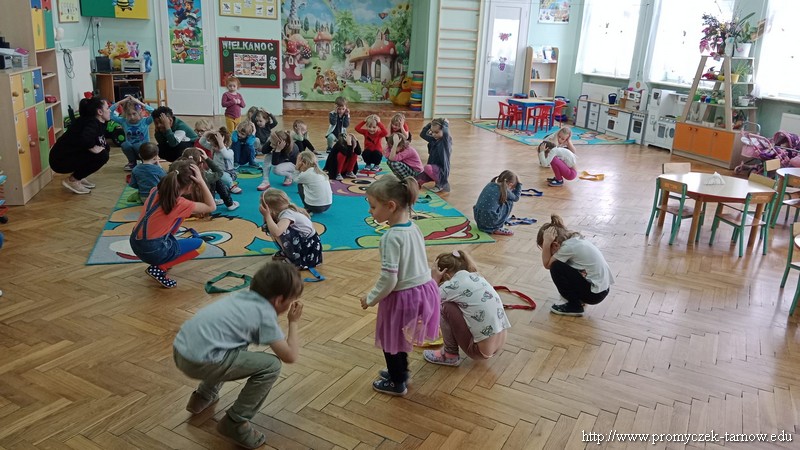W Wielki Czwartek tuż przed Świętami Wielkanocnymi, po podwieczorku nasze przedszkole powitało gościa, który przeprowadził dla Promyczków zajęcia z lekcji w-fu. Pani Karolina, mama Natalki z grupy Smyki dostosowała ćwiczenia i zabawy pod wszystkie grupy wiekowe. Nie zabrakło rozgrzewki na samym początku, ćwiczeń na ławce oraz zabaw rywalizacyjnych. Dzieci świetnie się bawiły a pani Karolina w cudowny sposób umiliła czas oczekiwania dzieciom na odbiór przez rodziców z przedszkola. Serdecznie dziękujemy za poświęcony czas i miłą atmosferę.
