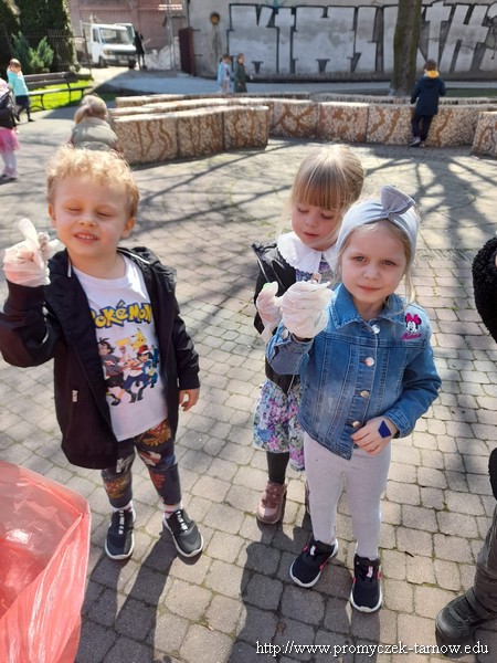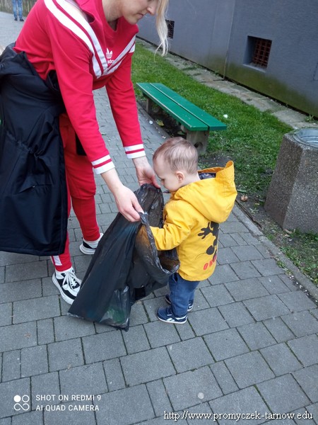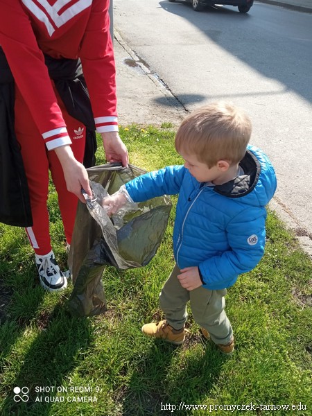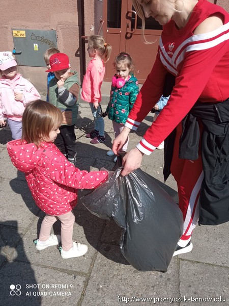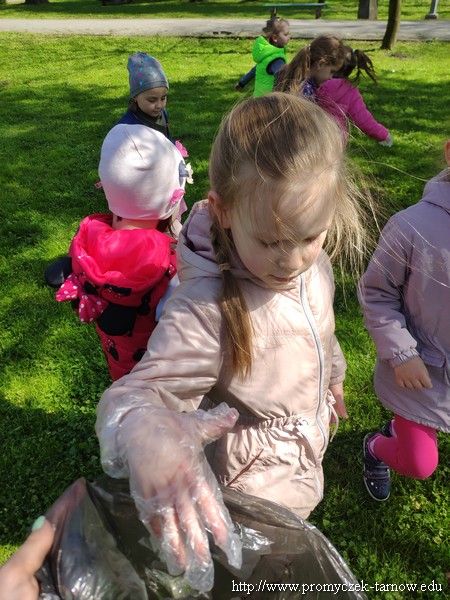 W piątek promyczki wzięły udział w jednej z największych akcji promujących ekologię w Polsce # Sprzątamy dla Polski. Poprzez konkretne działąnie zwracamy uwagę społeczeństwa na ważny temat, jakim jest ochrona klimatu i dbałość o nasze środowisko lokalne. Uzbrojeni w rękawiczki i worki na śmieci udaliśmy się w okolice przedszkola, aby uporządkować tereny zielone w Tarnowie. Wszystkie przedszkolaki zabrały się ochoczo do sprzątania i już po chwili zapełnili worki na śmieci niepotrzebnymi odpadami.