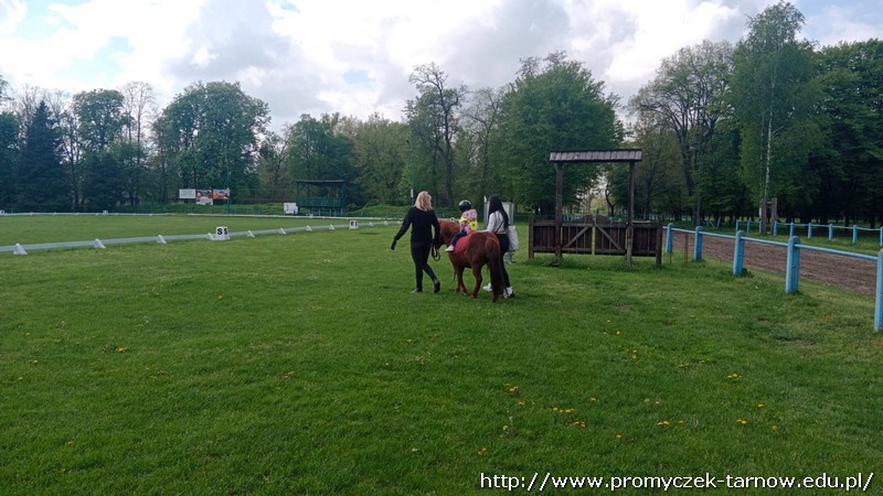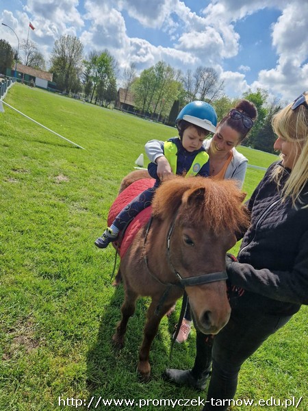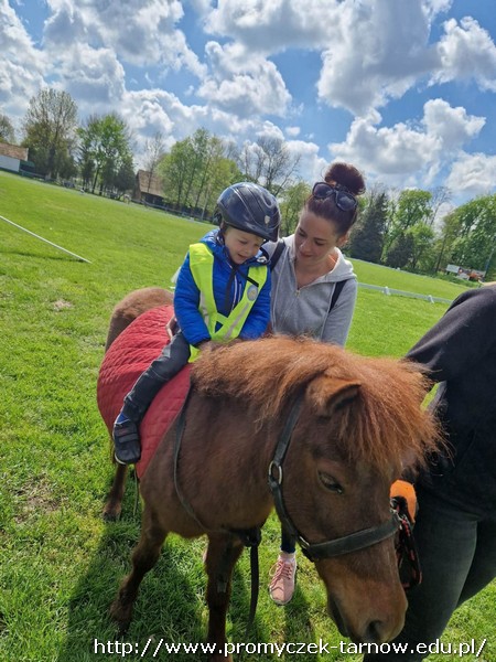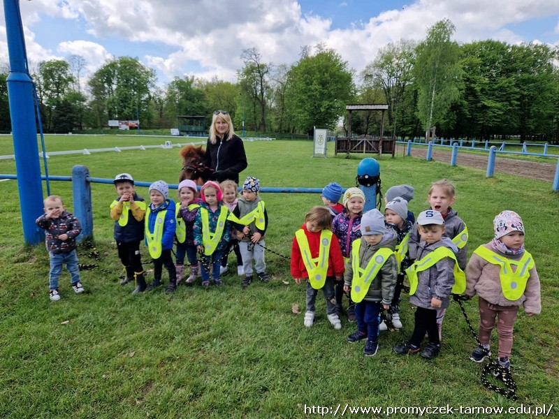 Zaraz po długim weekendzie majowym, Smyki w czwartek 4 maja odwiedziły Stadninę Koni w Klikowej. Każde dziecko wykazało się odwagą i bez problemu wsiadło na kucyka o imieniu Merida. Chętne przedszkolaki pomogły również pogłaskać konika, kolejnym punktem było szybkie zwiedzanie stajni i powrót do przedszkola autobusem miejskim. Serdecznie dziękujemy mamie Ksawcia i Kornelki - pani Kindze, za zasponsorowanie, pomoc w organizacji wycieczki i podarowanie pięknych kolorowanek dla wszystkich smyków. Dziękujemy również dziadkom naszego Jasia za słodki poczęstunek.