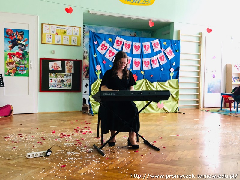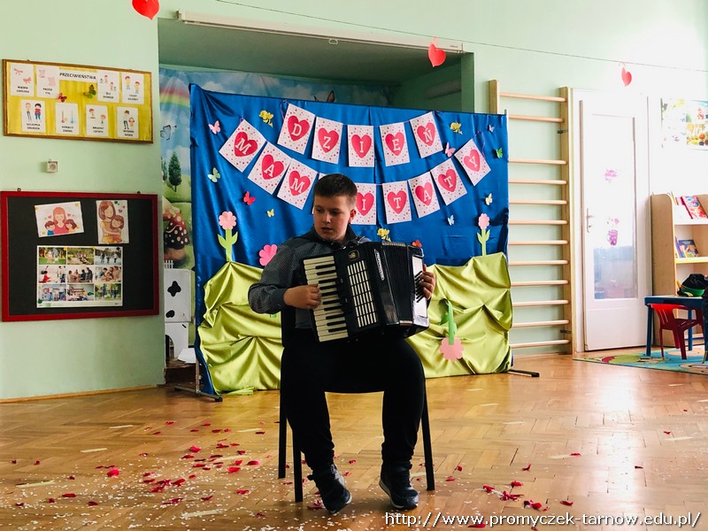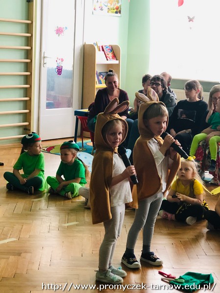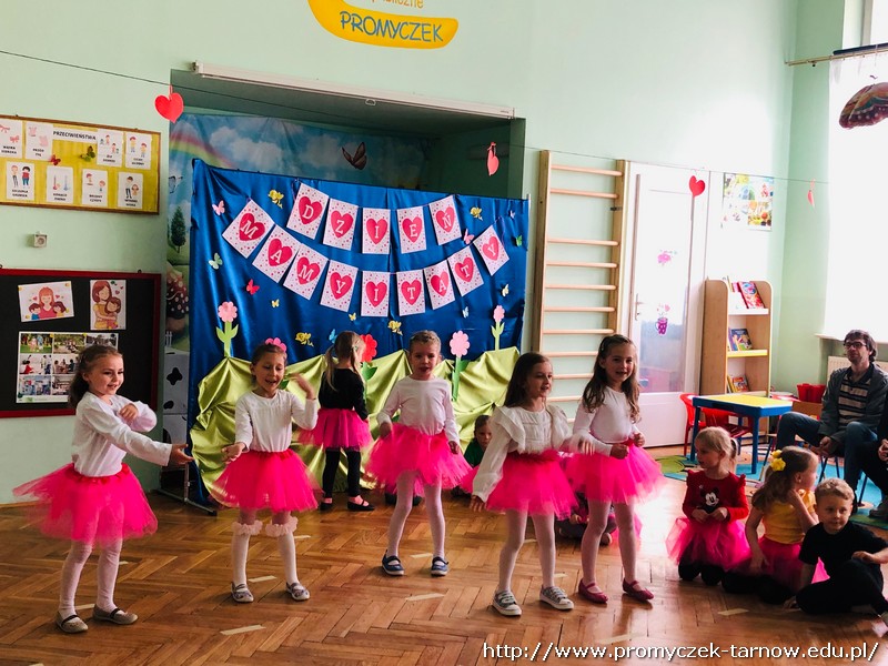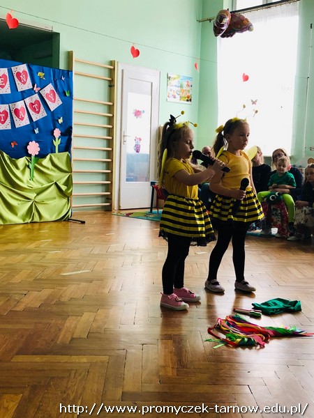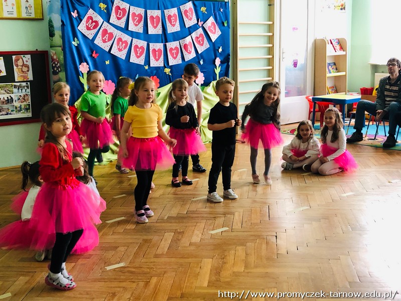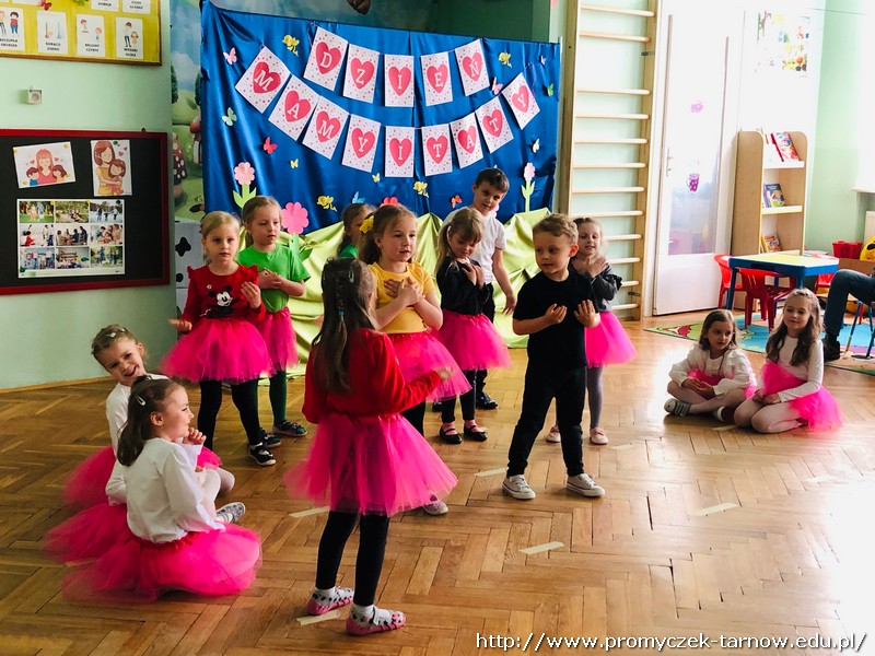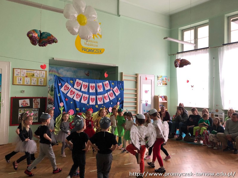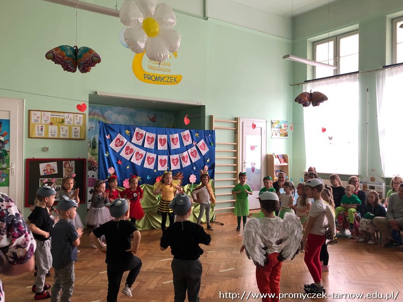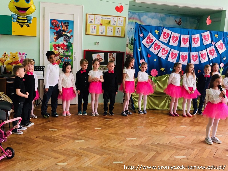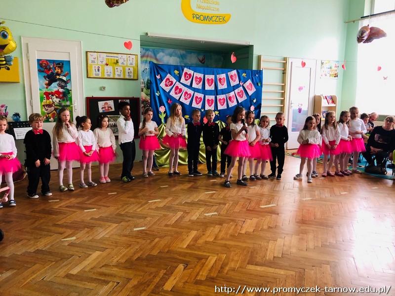25 maja w naszym przedszkolu odbył się Dzień Mamy i Taty. Tego dnia wszystkie dzieci z naszego przedszkola przygotowały dla rodziców wspaniałe występy oraz upominki. Grupa Smyków bawiła gości montażem słowno-muzycznym śpiewając piosenki oraz deklamując wierszyki. Asy zabrały rodziców na majową łąkę natomiast grupa Zuchów przypomniała rodzicom historię poznania Mamy i Taty. Do przedszkola zawitali także nasi absolwenci: Karolinka, Zosia oraz Błażej, którzy swą piękną grą umilali czas naszym gościom. Po występach na Rodziców czekał słodki poczęstunek oraz życzenia, uściski i całusy od swoich dzieci.
