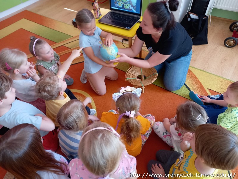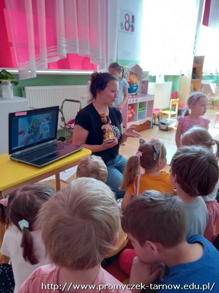 Dzieci z grupy Asów w bieżącym tygodniu rozmawiają o dzieciach mieszkających w różnych rejonach świata, o prawach dzieci oraz doskonalą swoje kompetencje społeczne w zabawach dramowych, słownych i ruchowych. W ostatni dzień maja Asów odwiedziła Pani Olga, mama Róży. Opowiedziała dzieciom o swoim pobycie w Republice Środkowoafrykańskiej, o codzienności mieszkańców, ich zwyczajach. Dzieci miały możliwość obejrzenia zdjęć oraz pamiątek przyniesionych przez mamę Róży. Serdecznie dziękujemy Pani Oldze za mile spędzony czas oraz podzielenie się z dziećmi swoimi wspomnieniami.