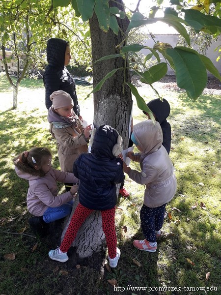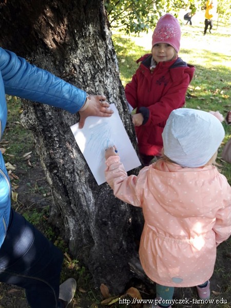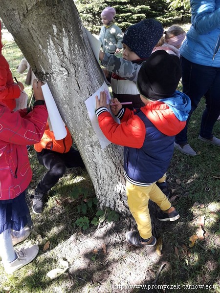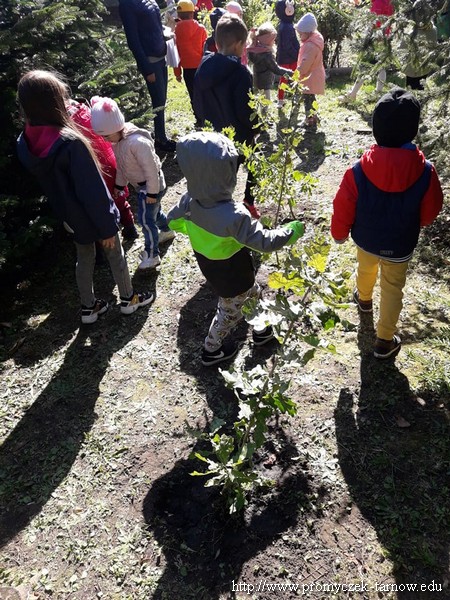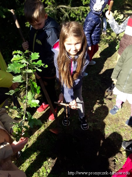 W piątek w nasze przedszkole obchodziło święto " Dnia Drzewa" realizowanego zgodnie z projektem "Zabawa sztuką". Celem tego święta było, zainspirowanie dzieci do podejmowania lokalnych działań proekologicznych dotyczących sadzenia i ochrony drzew. Dzieci dowiedziały się jak wygląda budowa drzewa oraz jakie korzyści dają nam rośliny. Zadaniem przedszkolaków było mocne przytulenie się do drzewa i "wsłuchanie" się w to co ono chce nam powiedzieć. Wielką przyjemność sprawiła praca plastyczna na świeżym powietrzu techniką frotaż, jednak największą atrakcją było posadzenie drzew. Przedszkolaki samodzielnie wykopały ziemię aby następnie wsadzić Dęby i je podlać. Przez najbliższe tygodnie Smyki, Asy i Zuchy będą obserwować i pielęgnować posadzone Dęby.