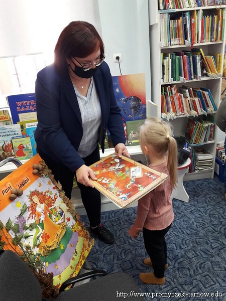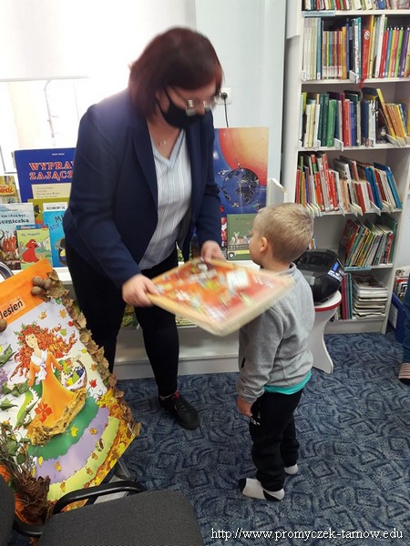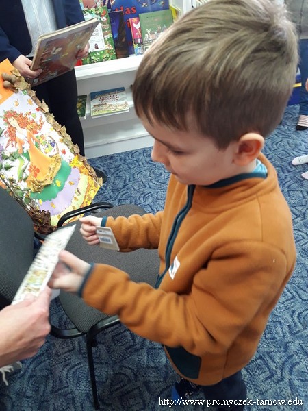 Po uroczystym pasowaniu na przedszkolaka Zuchy wybrały sie w piątek do Miejskiej Biblioteki Publicznej w Tarnowie. Tym razem najstarsza grupa była pasowana na czytelnika. Jednak zanim dzieci zostały pasowane musiały zdać egzamin i odpowiedzieć na kilka pytań zadawanych przez panią bibliotekarkę, związanych z wypożyczaniem książek. Zuchy z egzaminem poradziły sobie bez problemu, wiedział, że jak się wypożyczy to po przeczytaniu należy książkę oddać, że o książki trzeba dbać i je szanować, aby służyły dzieciom na długie lata. Po egzaminie dzieci, miały możliwość wypożyczenia pozycji książkowych do domu.