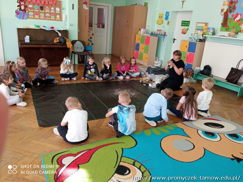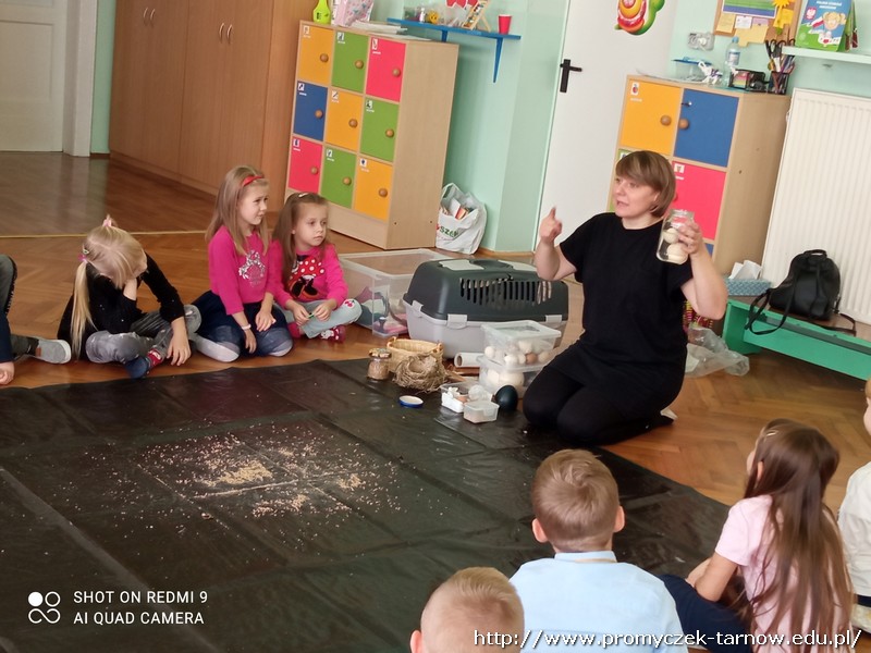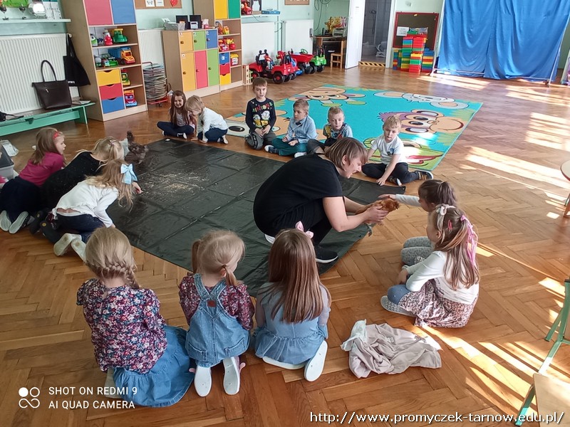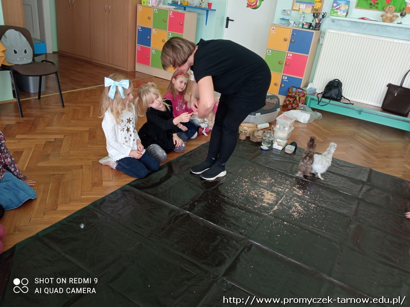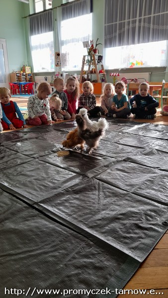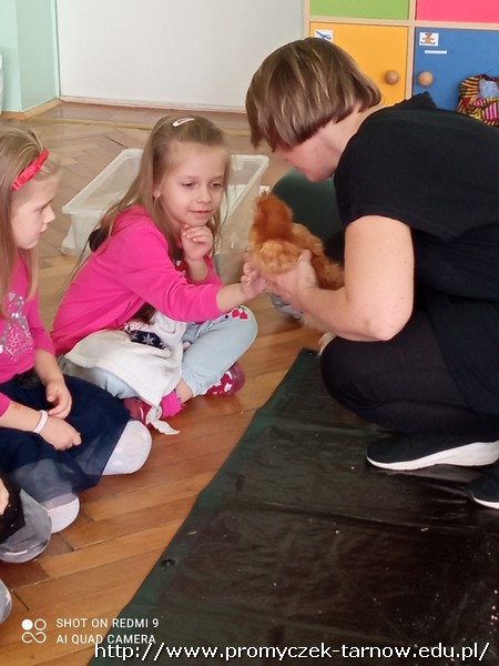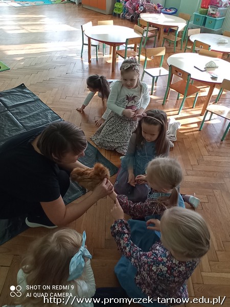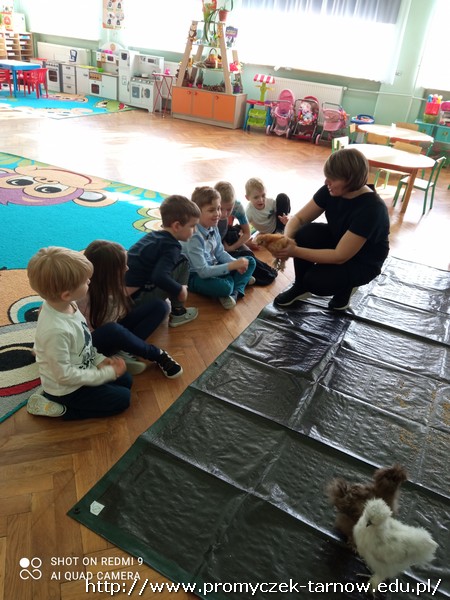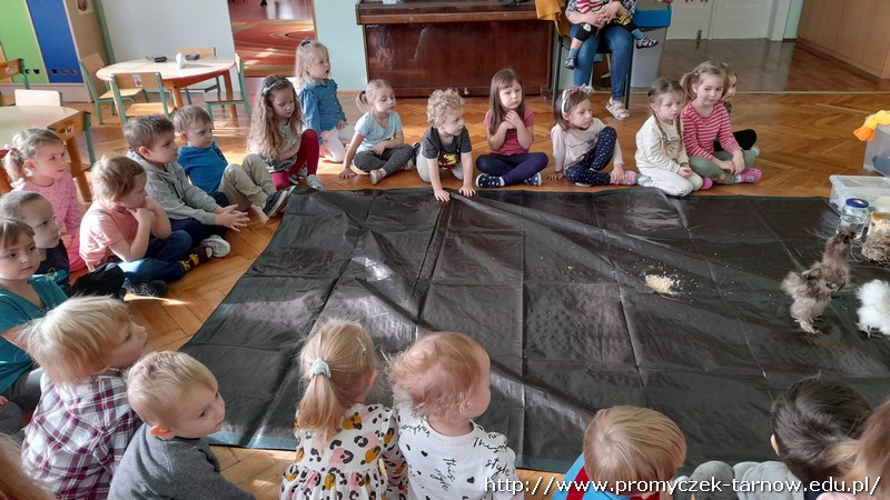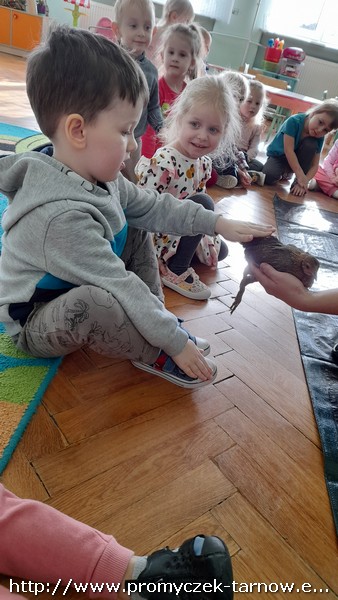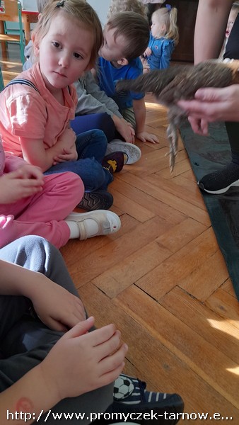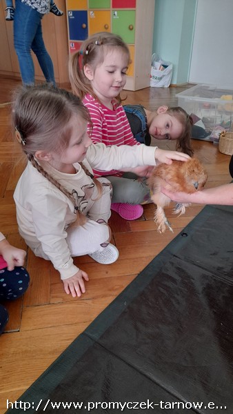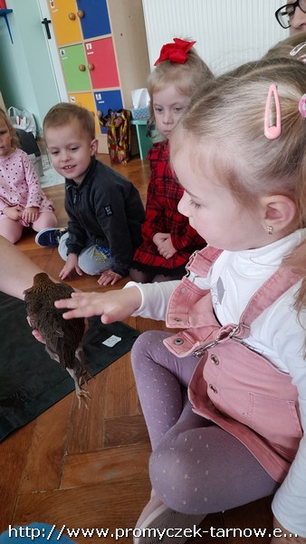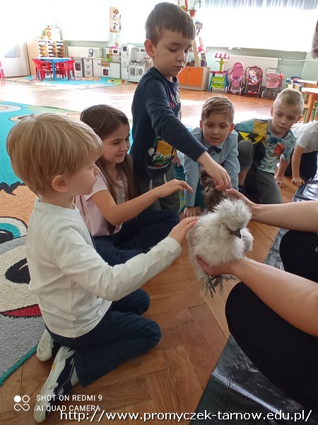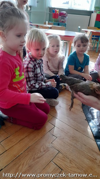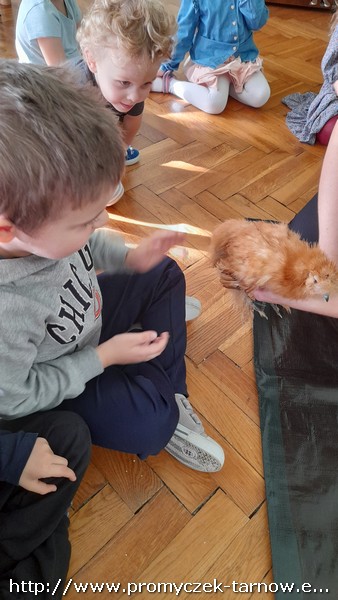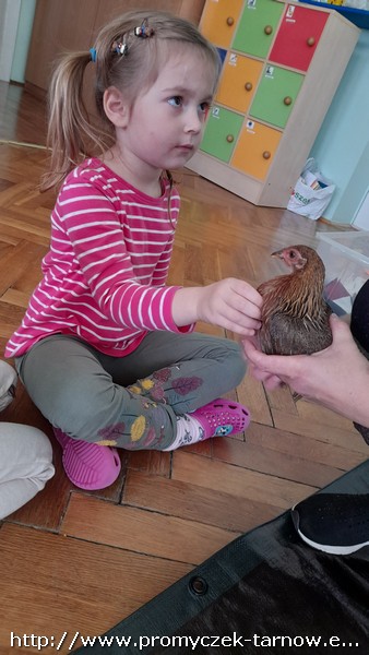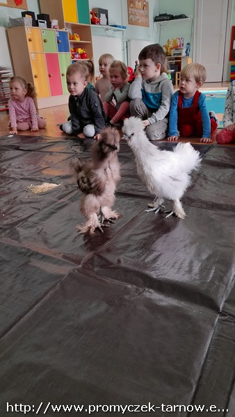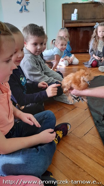 W piątek 5 listopada Promyczki miały okazję podziwiać ptactwo gospodarskie. Z wizytą do przedszkola przyszła Pani, która jest hodowcą kur ozdobnych. Dzieci miały okazję podziwiać silki, które charakteryzują się niezwykle puszystym i miękkim upierzeniem, co potwierdziły po dotknięciu i głaskaniu zwierzęcia. Właścicielka ptactwa interesująco opowiadała oraz pokazała jaja poszczególnych ptaków, jak na przykład struś czy przepiórka. Dzieciaki wysłuchały ciekawych informacji i ochoczo obserwowały zachowanie kur.