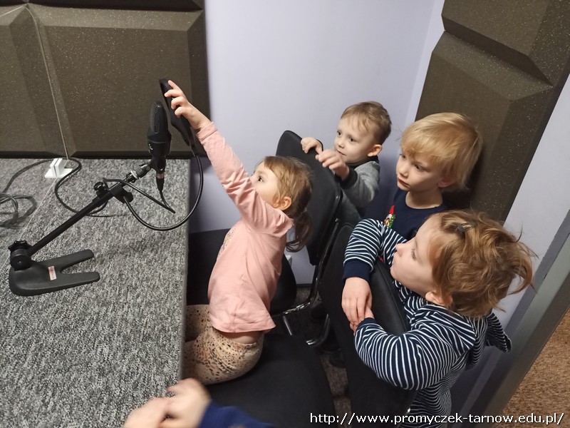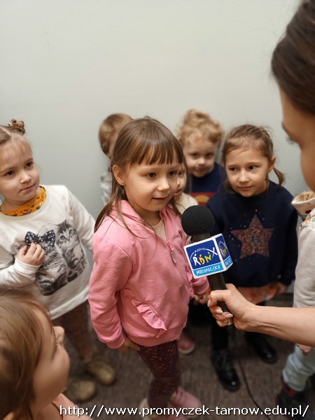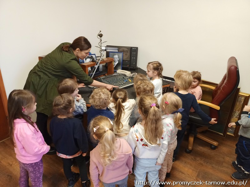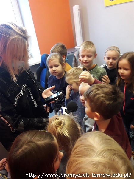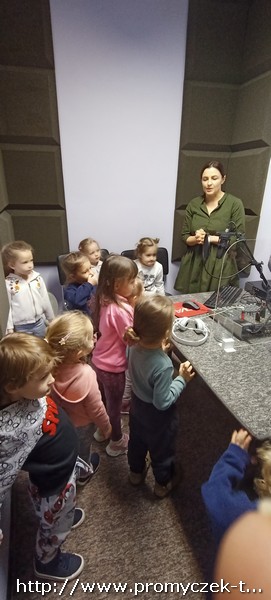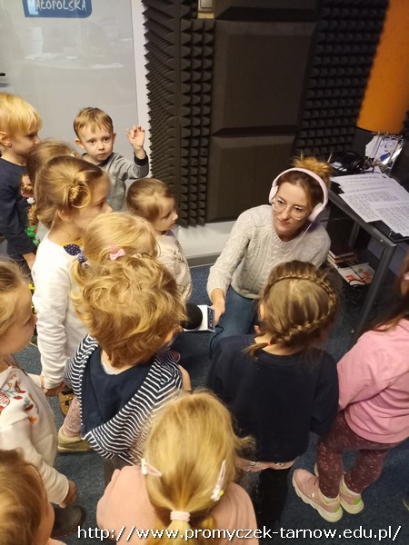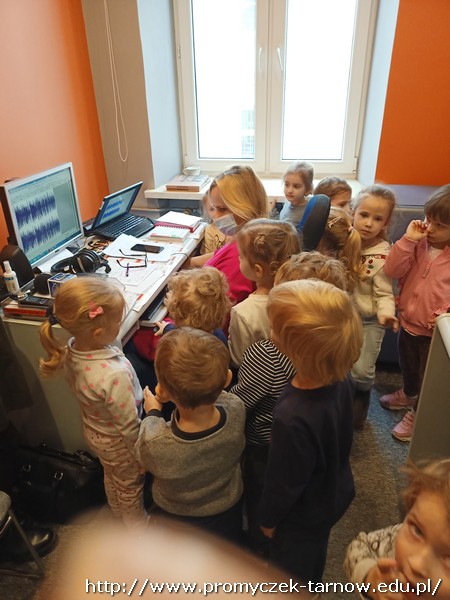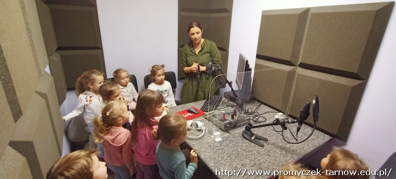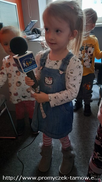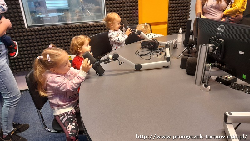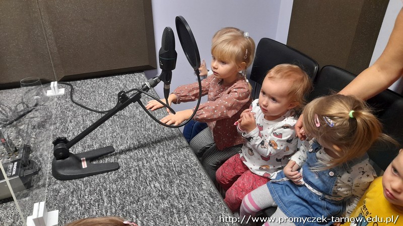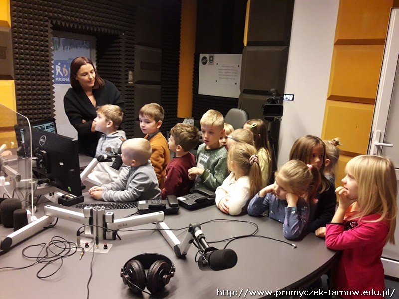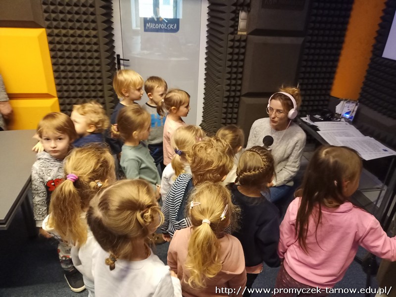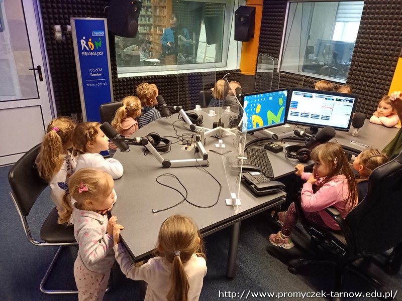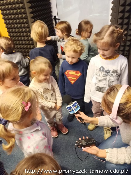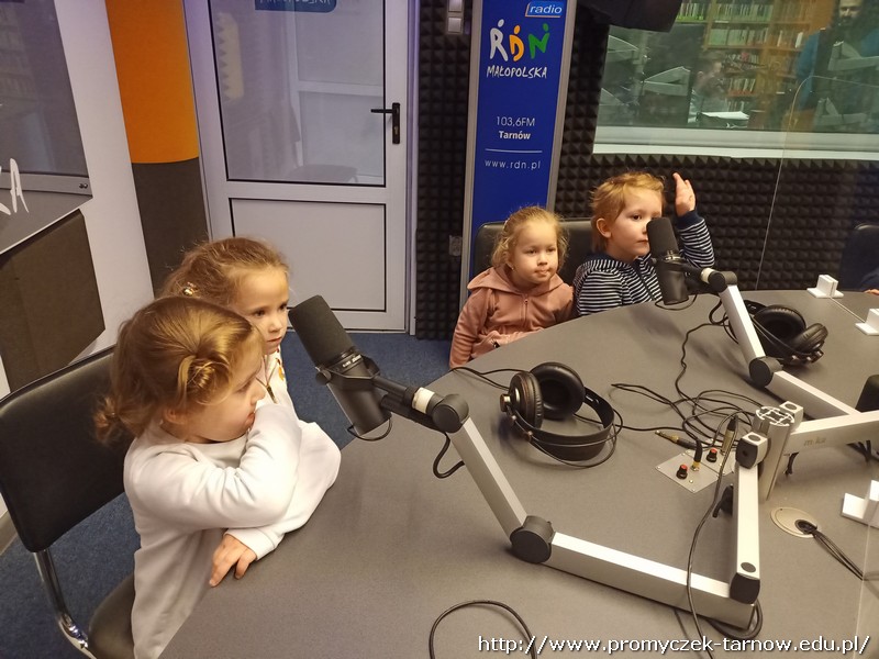 W połowie listopada każda grupa z przedszkola odwiedziła Radio RDN, które znajduje się na przeciwko naszego przedszkola. Wizytę do radia rozpoczęły Zuchy w kolejnym dniu Asy, poczym przyszła również kolej na najmłodszą grupę Smyki. Przedszkolaki zobaczyły jak wygląda budynek radia od środka, gdzie prowadzone są wywiady z zaproszonymi gośćmi. Promyczki miały, możliwość „zobaczyć”; dźwięk i udzieliły wywiadów do mikrofonu. Zuchom udało się być również na antenie, gdzie pozdrawiali swoich najbliższych. Dzieci były bardzo podekscytowane, zapoznały się z zawodem dziennikarza i wyraziły chęć zostania nim w przyszłości. Co więcej obejrzeli sprzęty, z których korzystało się dawno temu w pracy dziennikarza.
