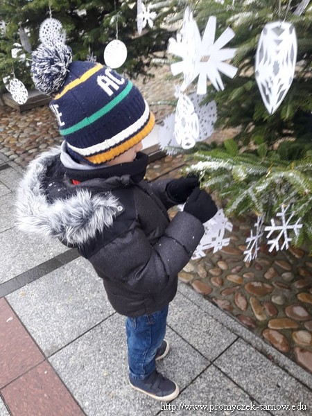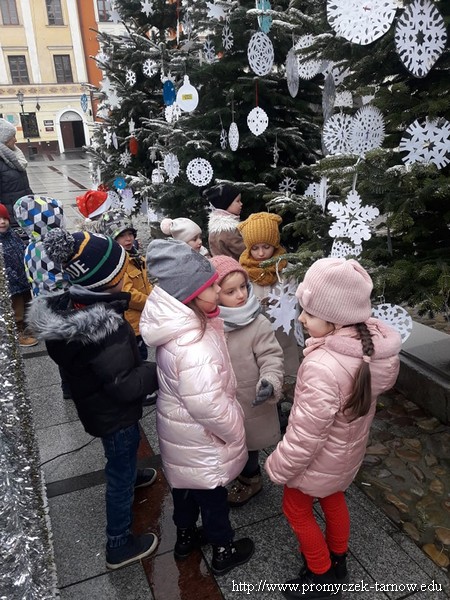 W grudniu Zuchy brały w udział w projekcie dekorowania choinek na Tarnowskim Rynku organizowanym przez Miasto Tarnów. Zadaniem dzieci było powycinanie śnieżynek, które później powiesiły osobiście na choinkach. Przy okazji grudniowych aktywności najstarsza grupa z przedszkola odwiedziła Tarnowski Dworzec Kolejowy. Dzieci dowiedziały się w którym miejscu znajdują się tablice informacyjne dotyczące odjazdów i przyjazdów pociągów, wiedzą ze przy kasie kupuję sie bilety bądź u Pana konduktora. Zobaczyły jak wygląda peron, wiedzą ze pociągami podróżują studenci, osoby dojeżdżające do pracy oraz bliscy, z którymi niebawem spotkają sie przy wigilijnym stole.