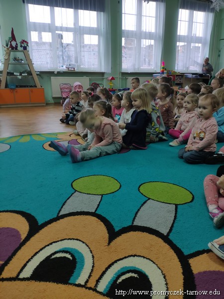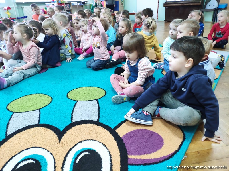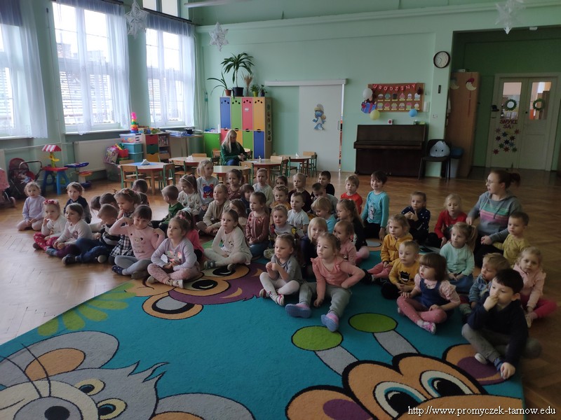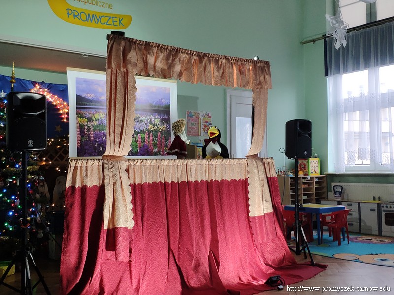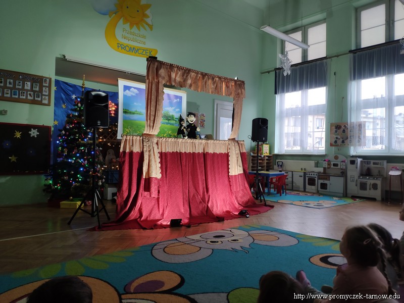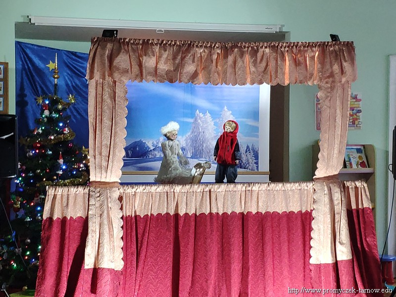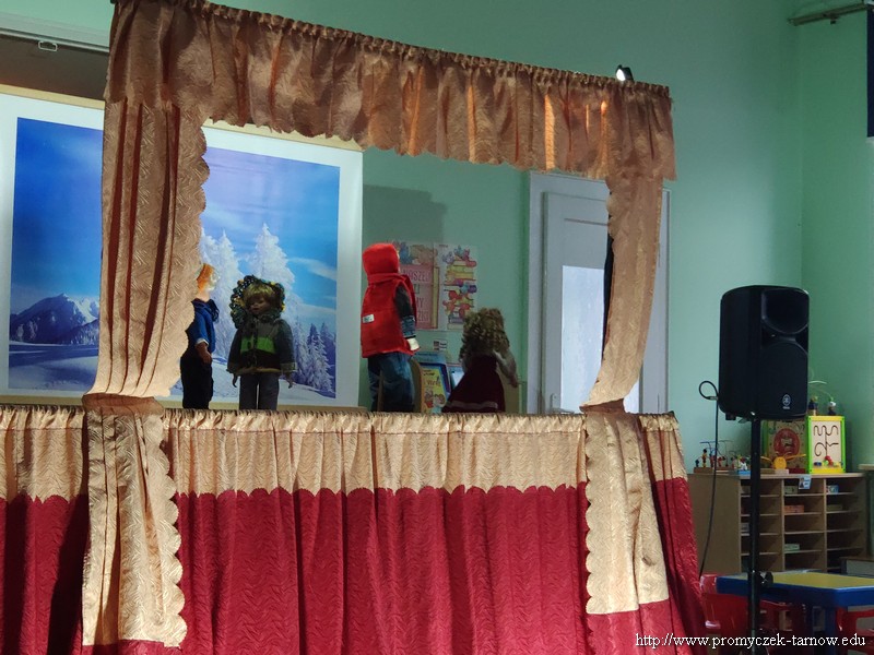 10 stycznia do przedszkola zawitał teatr. Nie był to zwykły teatr ani spektakl. Przedszkolaki oglądały teatrzyk kukiełkowy pt. "Królowa Śniegu". Chociaż za oknem ciężko dostrzec śnieg czy lód, to w baśni było go bardzo dużo. Dzieci poznały głównych bohaterów - Kaja i Gerdę oraz czarny charakter, czyli Królową Śniegu. Obserwując losy głównych postaci, dowiedziały się, że miłość potrafi zwyciężyć nawet w trudnej sytuacji, a także poznały moc czynienia dobra wśród ludzi.