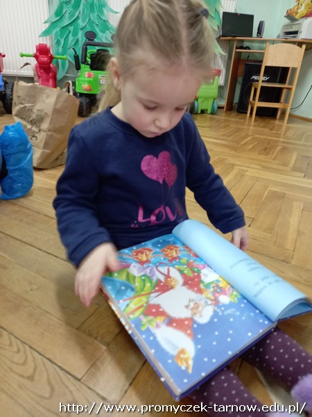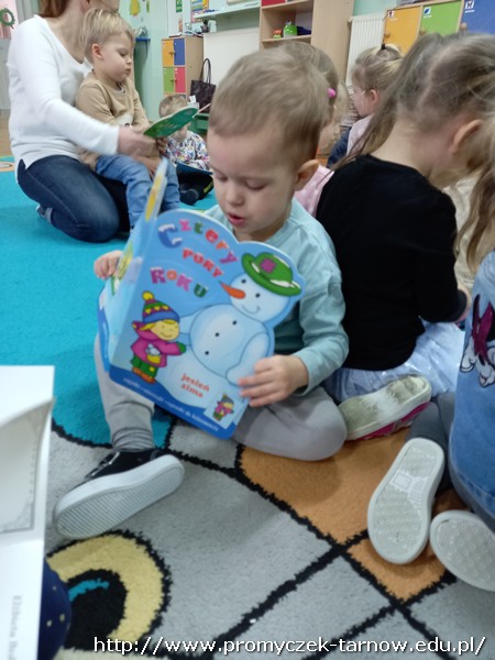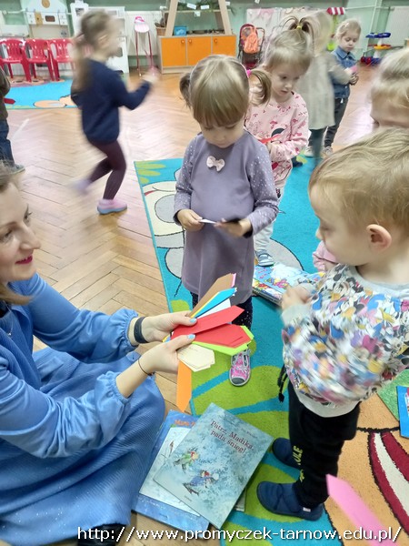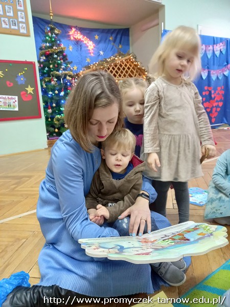 W piątkowy poranek grupę Smyków odwiedziła mama Jasia, która pracuje w Miejskiej Bibliotece Publicznej w Tarnowie. W ramach akcji Cała Polska Czyta Dzieciom, mama Jasia przeczytała dzieciom bajeczki o zimowej tematyce, opowiedziała o swojej pracy, a także przyniosła wiele pięknych książek, które dzieci oglądały z ogromnym zaciekawieniem. Na zakończenie Pani Marta rozdała dzieciom kolorowe zakładki. To było udane spotkanie.