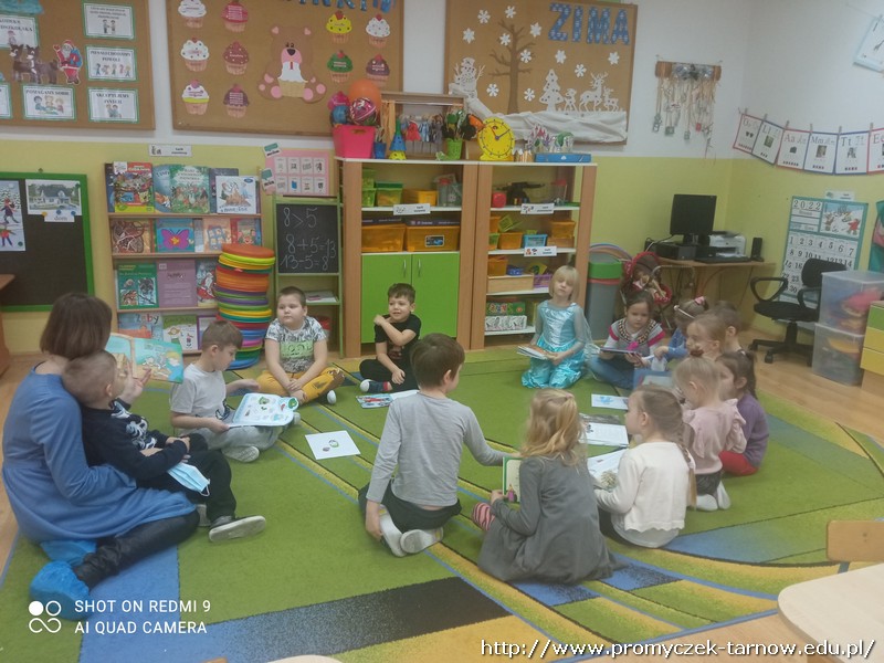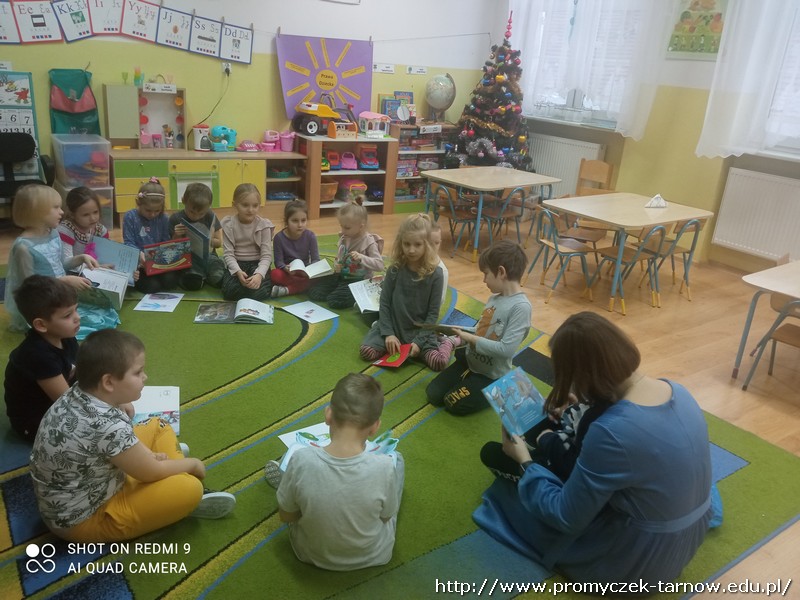 W ramach akcji cała Polska czyta dzieciom w zeszły piątek grupę Zuchy odwiedziła mama Krzysia. Dzieci z radością wysłuchały książeczek o tematyce świątecznej i zimowej oraz oglądały przyniesione przez Panią Martę książeczki. Na koniec dostały śliczne zakładki do książki, które mogą samodzielnie ozdobić. Bardzo dziękujemy za to miłe spotkanie!