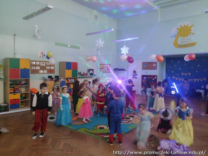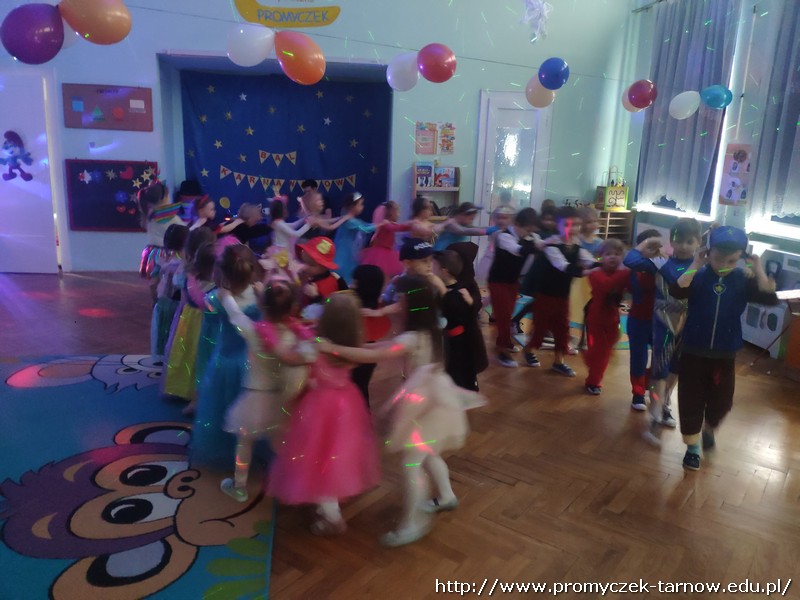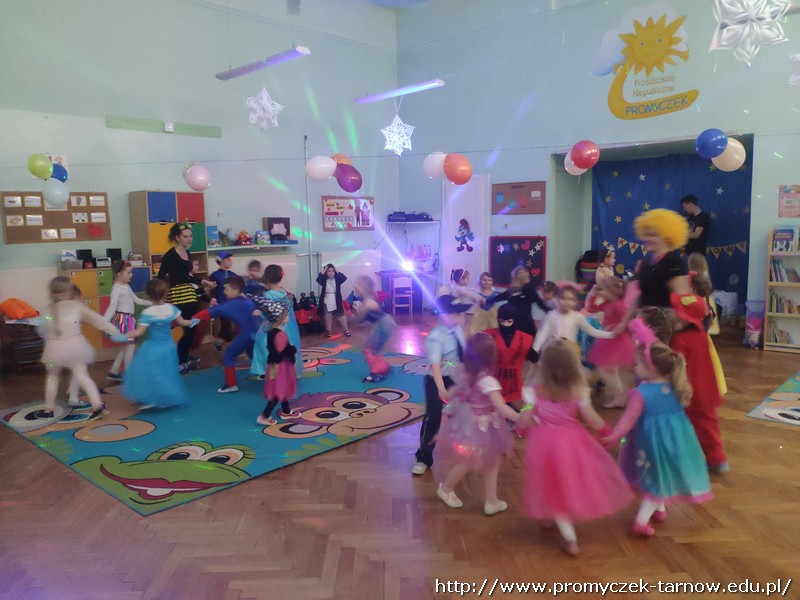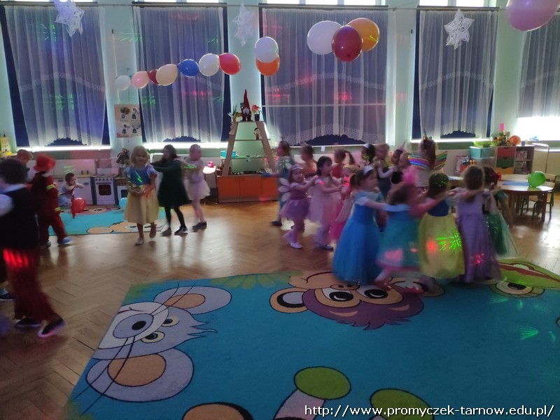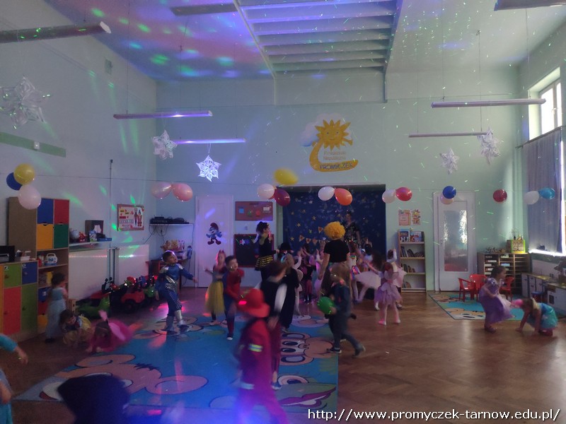 2.02.2022 roku w Promyczku odbył się bal karnawałowy. Wszystkie dzieci ubrały się w piękne, kolorowe stroje. Rozbrzmiała muzyka w Sali smyków i wszyscy zaczęli zabawę. Tańce w kółeczku, swobodne wygibasy oraz pociąg – wszystko to przy akompaniamencie głośnej muzyki, przy kolorowych światłach i z mnóstwem baniek mydlanych unoszących się po całej sali. Z twarzy dzieci i tych młodszych i tych starszych oraz Pań nie schodził uśmiech do ostatniej minuty balu. To była udana impreza!