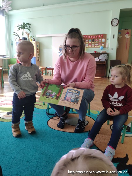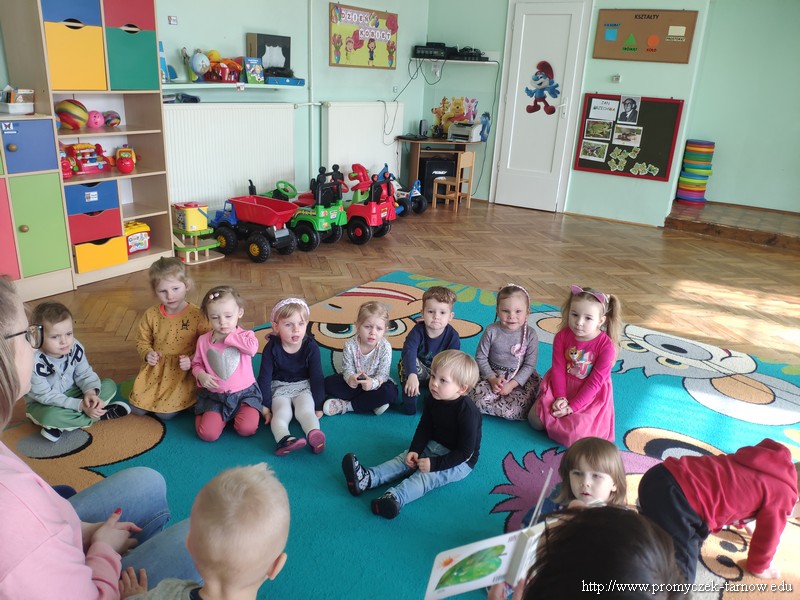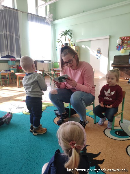 W ramach ogólnopolskiego programu Cała Polska Czyta Dzieciom grupę Smyków odwiedziła mama Wiktorii. Pani (imię) przeczytała dzieciom bajeczkę "Bardzo głodna gąsienica" autorstwa Erica Carle'a oraz " Kicia Kocia majsterkuje" autorstwa Anity Głowińskiej. Dzieci z przejęciem wysłuchały bajeczek, odpowiadały na pytania dotyczące treści. Na koniec wszystkie Smyki wspólnie z naszym gościem zatańczyły w kółeczku ulubionego Grozika. Już czekamy na kolejne spotkanie.