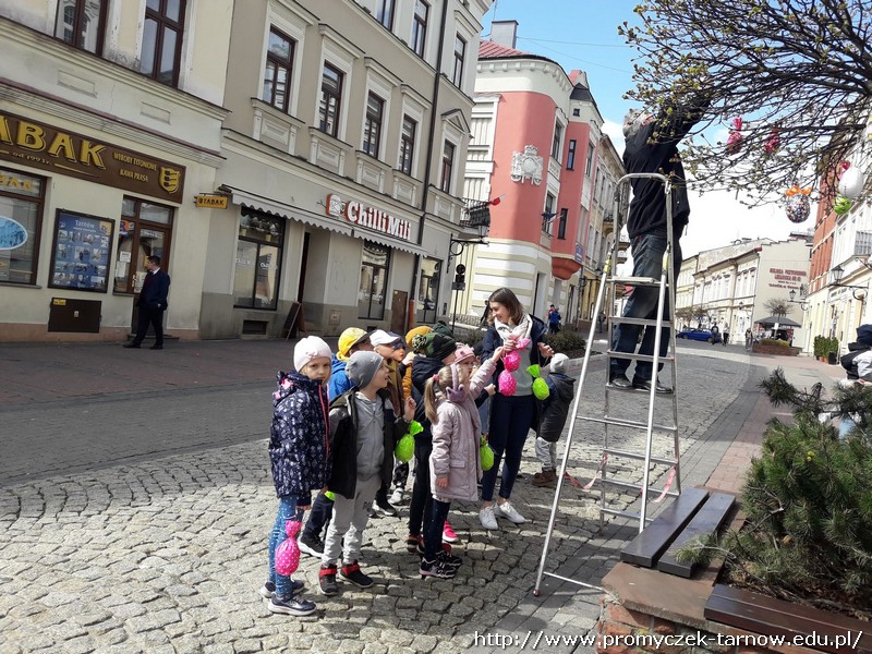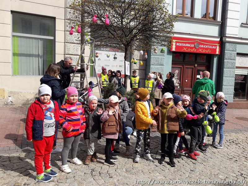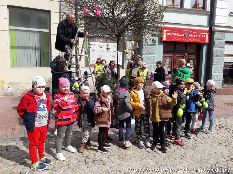 7 kwietnia po raz kolejny nasze przedszkole brało udział w Desancie pisanek Wielkanocnych. Zuchy jako najstarsza grupa wybrała się na ul. Wałową, aby ozdobić drzewko wcześniej przygotowanymi pisankami. W centrum Tarnowa zrobiło się bardzo kolorowo i czuć już zbilżające się Święta Wielkanocne.