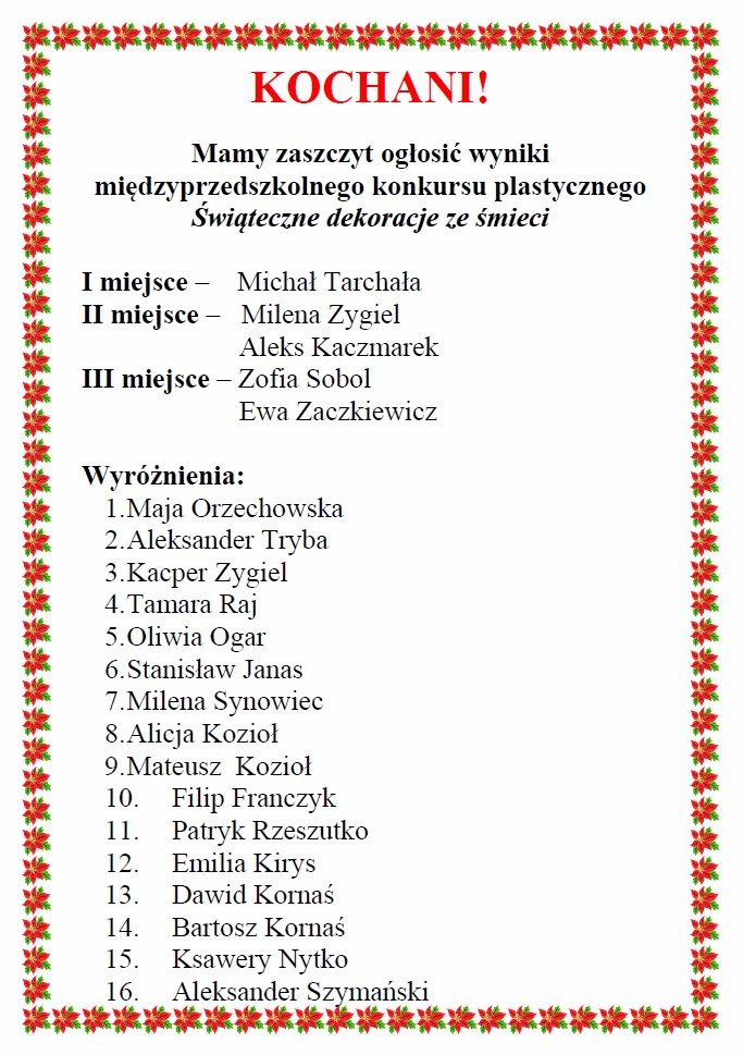 Wyniki konkursu "Świąteczne dekoracje ze śmieci"