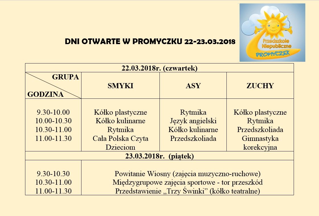 Serdecznie zapraszamy na Dni Otwarte naszego przedszkola! Odbędą się one w dniach 22-23 marca 2018 r. Szczegółowy harmonogram poniżej.