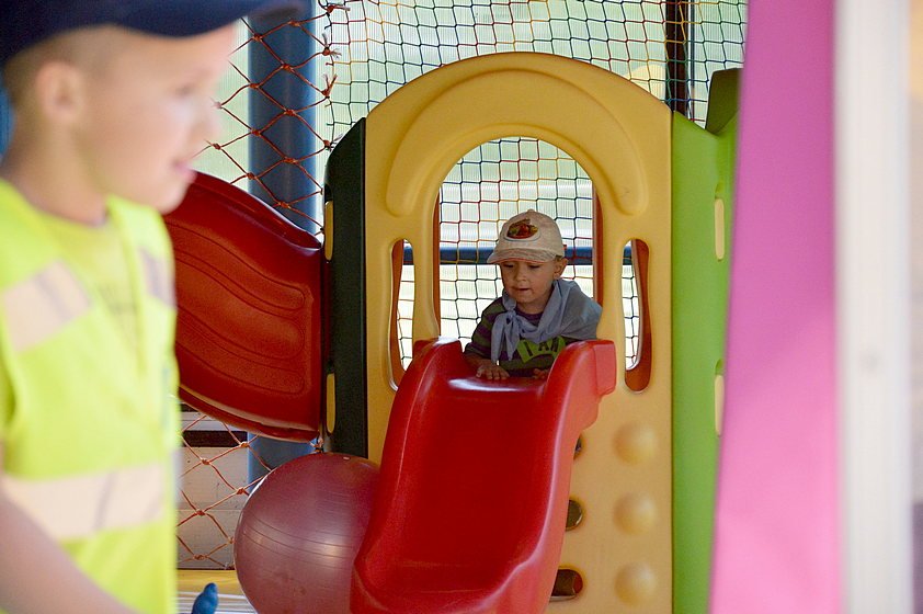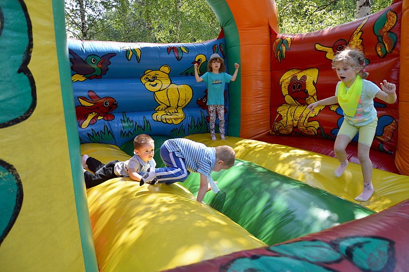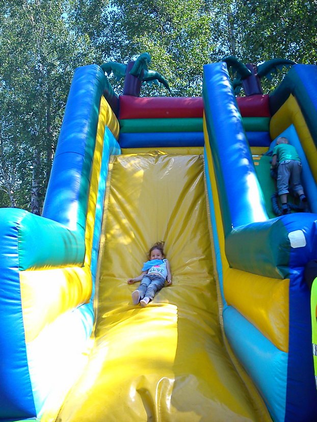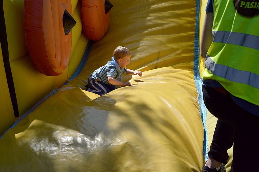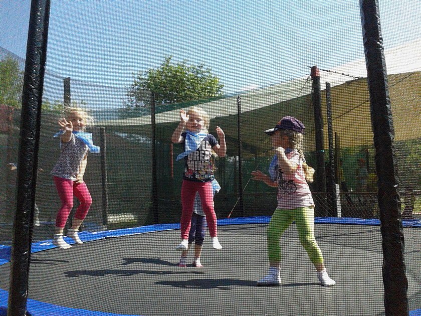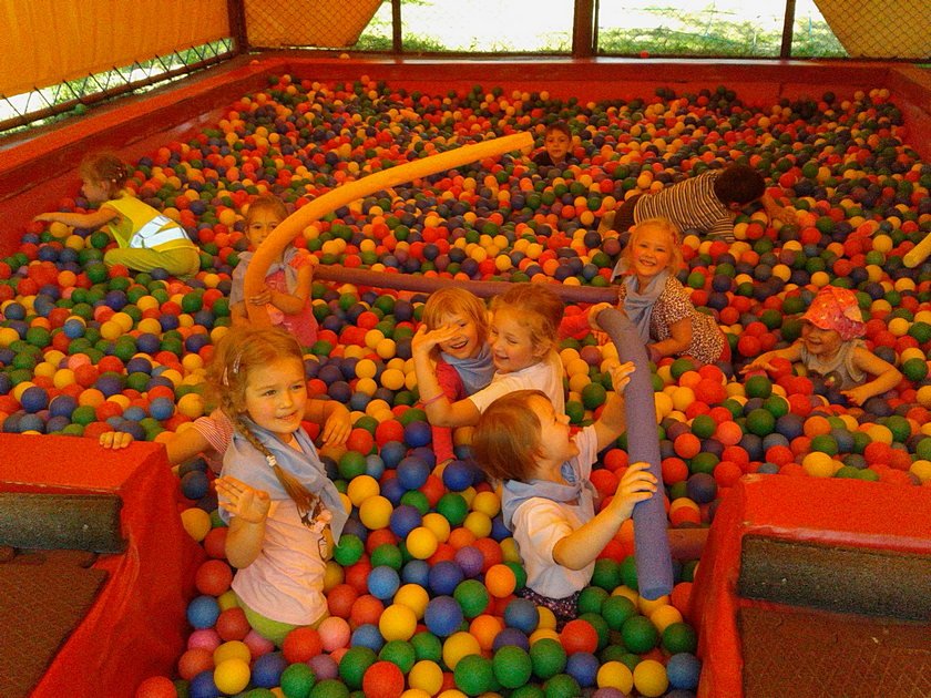 Kolejny wybuch radości u naszych podopiecznych wywołał sam widok Rancza Pasja. Okazało się bowiem, że na najmłodszych czeka tam mnóstwo atrakcji: suchy basen z kulkami, dmuchane zamki, pawilon przygód, tor łuczniczy, karuzela i wiele innych.