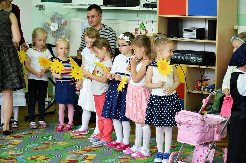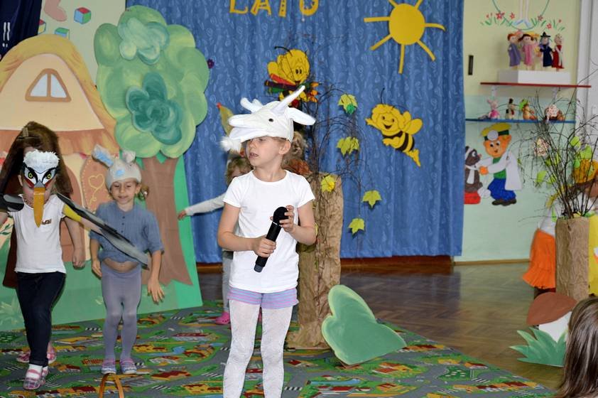Po tym występne nadszedł czas na krótką prezentację dzieci z każdej z grup – promyczki śpiewały wakacyjne piosenki i recytowały wiersze. Na koniec dzieci razem z rodzicami rozeszli się do swoich sal, gdzie wychowawczynie rozdawały pamiątkowe dyplomy i drobne upominki.