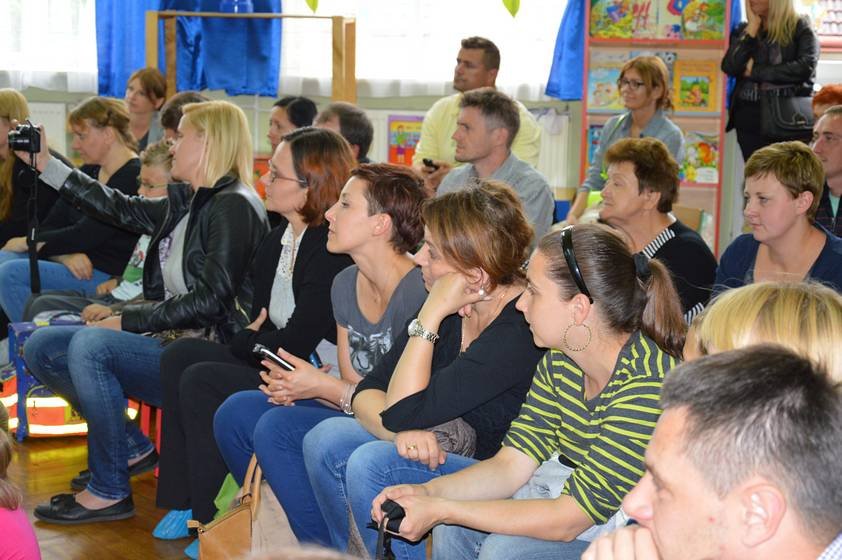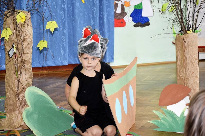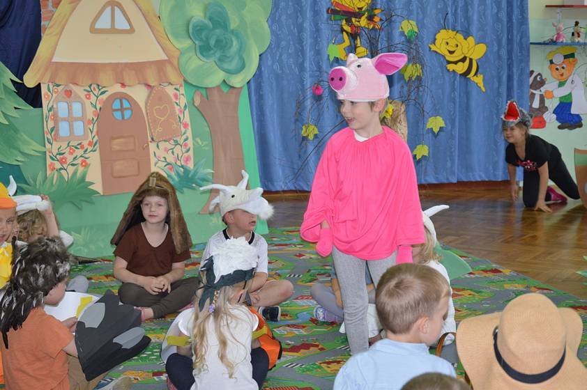 Na początku wszystkich gości powitała pani dyrektor Renata Sokołowska, która w kilku słowach podziękowała rodzicom, dzieciom oraz wszystkim pracownikom za owocną współpracę oraz rozdała dyplomy rodzicom, którzy w szczególny sposób wspierali działalność przedszkola. Następnie mogliśmy obejrzeć przedstawienie pt. „Nie płacz koziołku” w wykonaniu kółka teatralnego, którego opiekunem jest pani Anna Ścieńska.