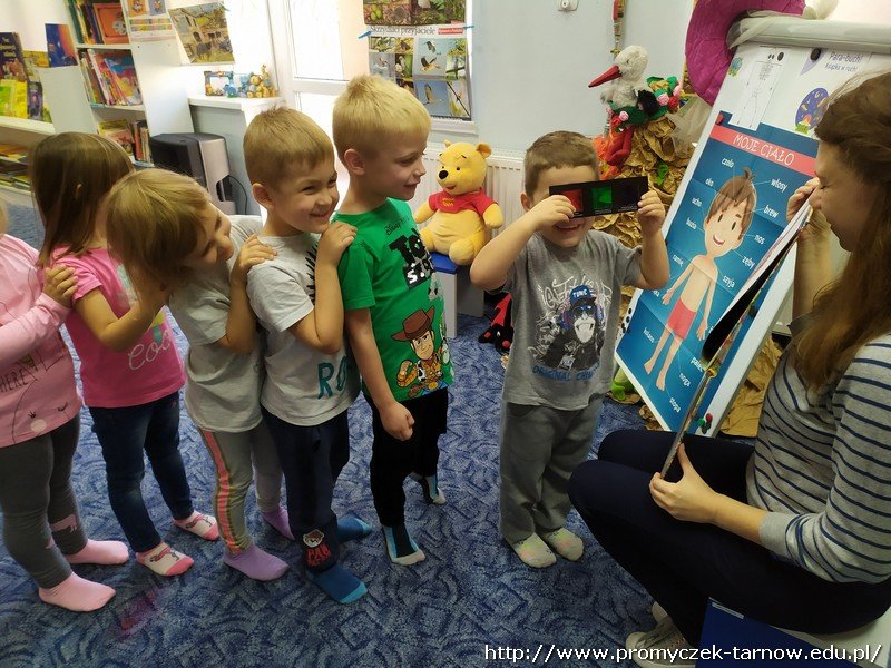 We wtorek Asy brały udział w zajęciach czytelniczych w Bibliotece dla Dzieci i Młodzieży. Tematem zajęć było „Moje ciało”. Za pomocą zabaw oraz z wykorzystaniem książek i encyklopedii Asy aktywnie poszerzały swoje słownictwo dotyczące ciała i wyglądu. Dzieci ćwiczyły równowagę i szybkość. Miały też okazję zobaczyć budowę ciała człowieka "od środka", za pomocą specjalnych okularów, co spodobało im się najbardziej.