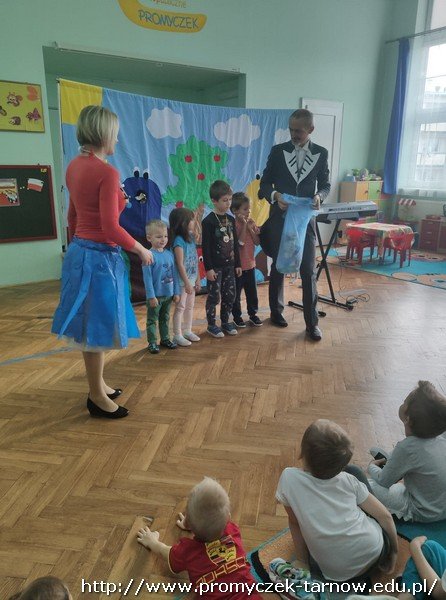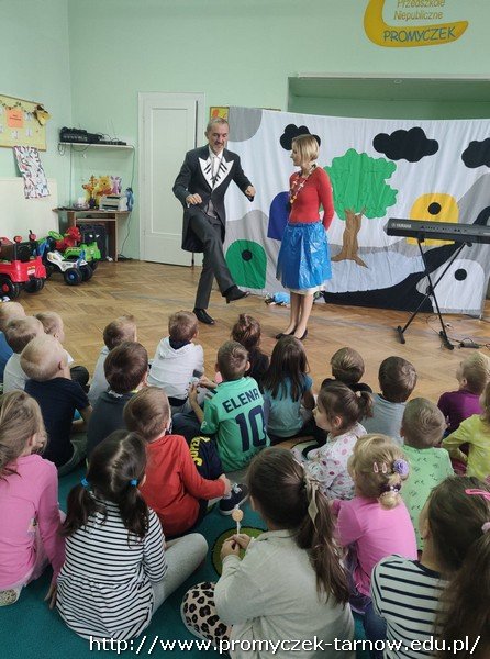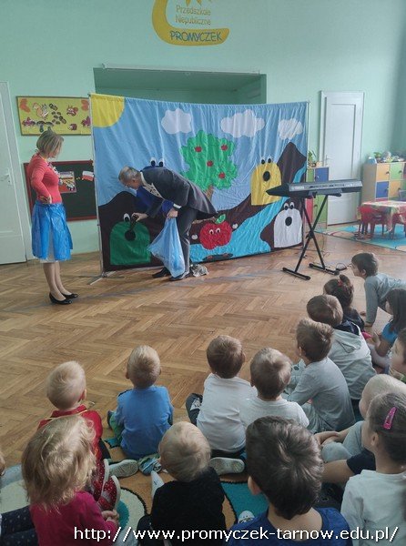 Dnia 7 listopada nasze przedszkole odwiedził teatrzyk "Wiolinka i Bemol". Dzieci miały okazję uczestniczyć w audycji muzycznej pod tytułem "Do Re Mi- rozśpiewana ekologia". Jak sama nazwa mówi, audycja muzyczna związana była z ekologią. Podczas spotkania nasze promyczki poznały znaczenie między innymi takich słów jak : "ekologia", "recykling", "środowisko", ponadto wspólnie uczyliśmy się segregować śmieci, oraz wykorzystać je w ciekawy sposób na przykład robiąc z nich eko-instrument lub piękną eko- biżuterię. Nauka przeplatana była wspólnymi tańcami , śpiewem a także konkursami w których nagrodą były pyszne słodkości.