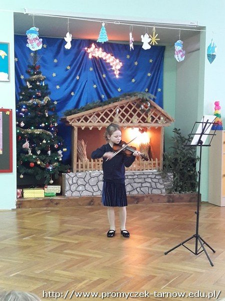 W dniu 23 stycznia nasze przedszkole odwiedzili specjalni goście ze Szkoły Muzycznej w Tarnowie a mianowicie uczennice wraz ze swoimi Paniami nauczycielkami z zespołu muzycznego "Grające groszki" prezentując grę na instrumentach smyczkowych.Mieliśmy przyjemność wysłuchać cudownego koncertu kolędowego. Pani opowiedziała w jaki sposób uczniowie uczą się grać na instrumentach i zachęcała dzieci do korzystania z instrumentów jak najczęsciej. Serdecznie dziękujemy i zapraszamy ponownie.