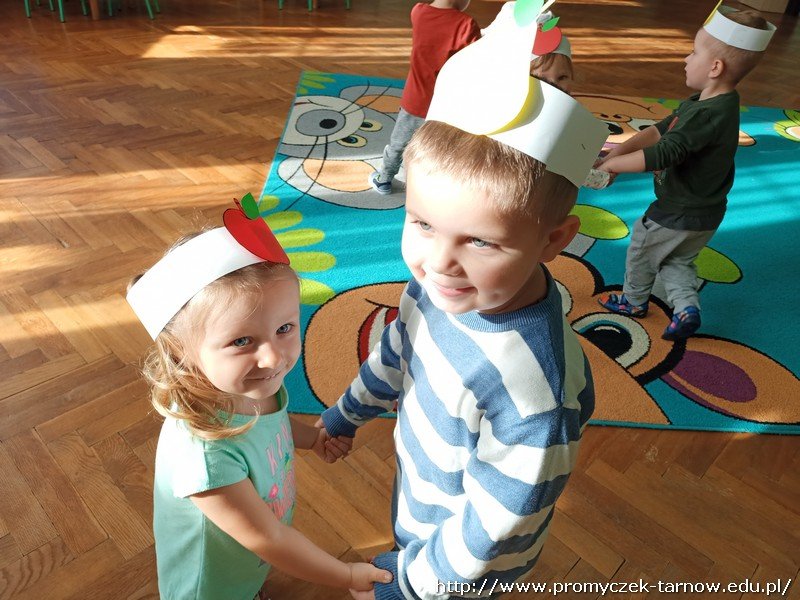 "Małe czerwone jabłuszko, tańczy dziś pod drzewem z gruszką" - tak śpiewają i bawią się nasze najmłodsze przedszkolaki, czyli Smyki. Wraz z nadejściem jesieni dzieci poznały bardzo dokładnie owoce z polskich sadów, a nawet wykonały piękne papierowe jabłuszka. Oczywiście nie były tak smaczne jak prawdziwe, ale wywołały mnóstwo radości i dumy w oczach rodziców, którzy mogli podziwiać prace swoich małych skarbów. I o to chodziło.