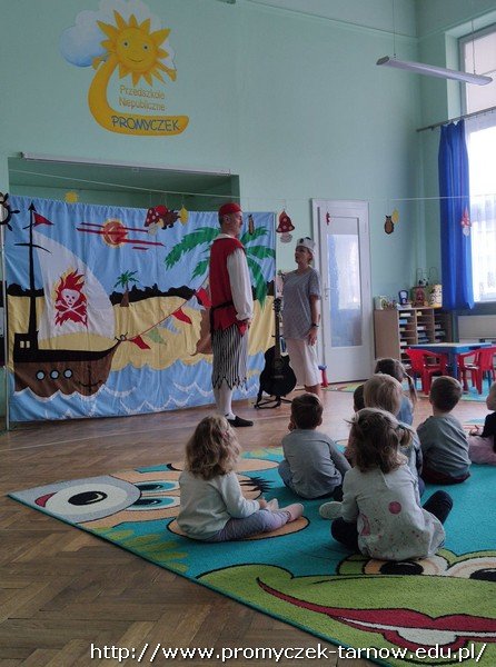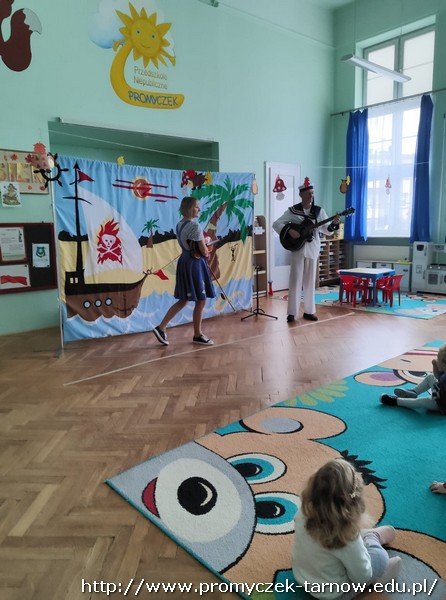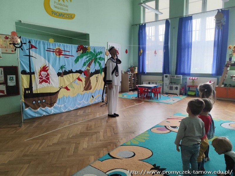 6 listopada nasze przedszkole odwiedziła grupa artystyczna "Wiolinka i Bemol". Tego dnia wybraliśmy się wspólnie w muzyczną morską podróż. W trakcie rejsu nasze przedszkolaki dowiedziały się, że zwyczaje panujące na morzu różnią się od tych, które panują na lądzie. Wspólnie z Wiolinką i Bemolem uczyliśmy się języka, którym posługują się marynarze. Na zakończenie spotkania wszyscy zdaliśmy egzamin zostając prawdziwymi marynarzami!.