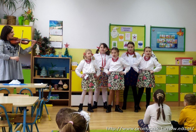 Dzień przed przedszkolną Wigilią, 17 stycznia, najstarszą grupę Zuchów odwiedzili goście - starsze koleżanki ze Szkoły Podstawowej nr 2 w Tarnowie. Zaśpiewały Zuchom piękne kolędy i pastorałki, a gromkie brawa mogły oznaczać tylko jedno - występy bardzo się podobały. Każdy Zuch otrzymał także wyjątkowy upominek - niepowtarzalną ozdobę świąteczną w postaci własnoręcznie wykonanego skrzata. Jeszcze raz dziękujemy i życzymy Wesołych Świąt!
